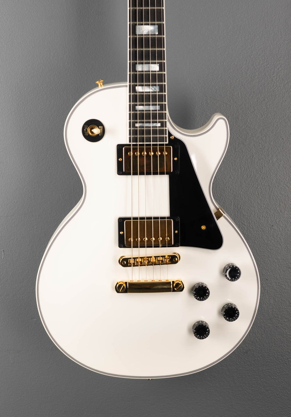 "As the flagship model from Gibson Custom Shop, the Les Paul Custom lives up to the high standards set by its 1950s archetype while evolving to a level of tone and performance more suited to today's musical demands. Beneath the layers of its "tuxedo" appointments lies the crisp, edgy voice of a matched 490/498 humbucker set, a solid Ebony fingerboard, a long neck tenon for maximum sustain and a two-piece maple top over a solid mahogany body which adds the perfect amount of sonic bite to everything from jazz to hard rock. It sounds as good as it looks, and it looks as good as it sounds!"