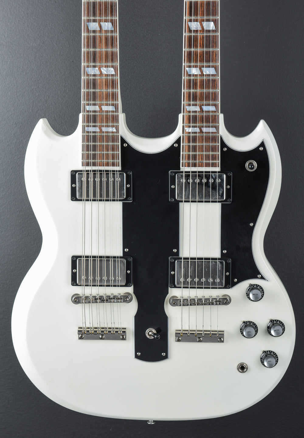 Alpine White, Gloss nitrocellulose lacquer finish, Solid Mahogany body, Slim taper C shaped Mahogany necks, Bound 12” radius Indian Rosewood fingerboards with the celluloid split Parallelogram inlays and authentic medium jumbo frets, 24.75″ scale lengths, 1.69″ nut widths, Unpotted Custombucker Alnico III bridge and neck pickups, 3-way toggle switching with the volume and tone controls for each pickup plus the 3-way neck selector switch, ABR-1 tune-o-matic bridges and the 6/12 1275 tailpieces, Gibson deluxe double ring tuners, 12.4 pounds, With hardshell case