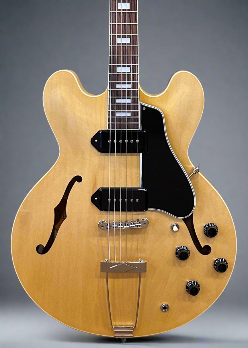 Antique Natural, Gloss nitrocellulose lacquer finish, Hollow 3-ply Maple/Poplar/Maple body, Rounded C shaped Mahogany neck, Bound 12” radius Indian Rosewood fingerboard with the acrylic small block inlays and medium jumbo frets, 24.75" scale length, 1.69" nut width, Dogear P-90 bridge and neck pickups, 3-way toggle switching with volume and tone controls for each pickup, ABR-1 tune-o-matic bridge and tarpeze tailpiece, Gibson vintage deluxe tuners, 6.3 pounds, With hardshell case