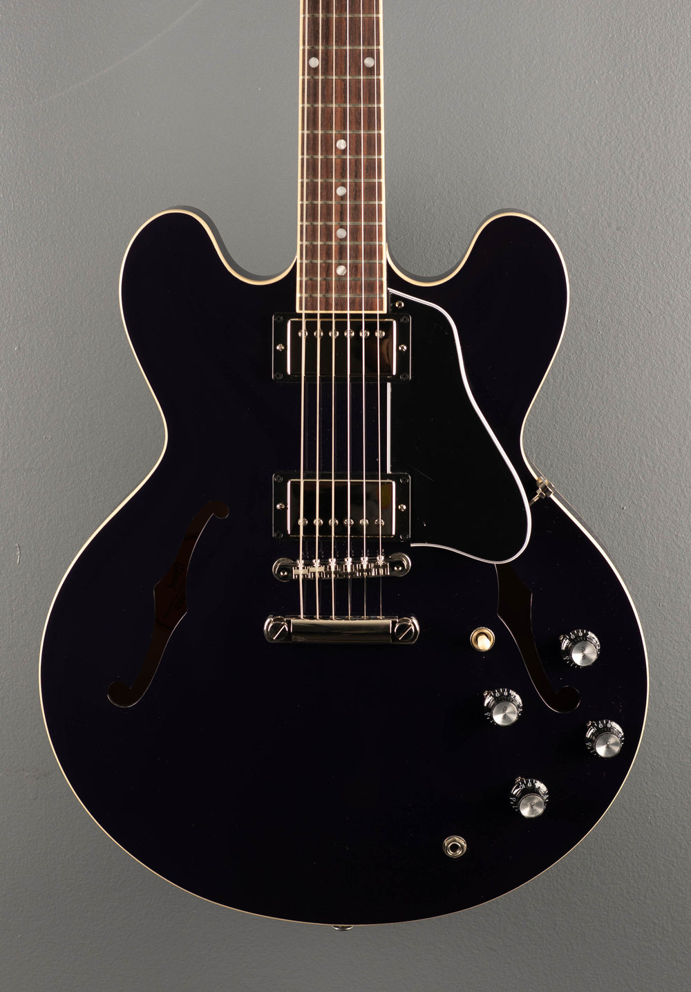 Deep Purple, Gloss nitrocellulose lacquer finish, Semi-hollow 3-ply Maple/Poplar/Maple body with a Maple centerblock, Rounded C shaped Mahogany neck, Bound 12” radius Rosewood fingerboard with the acrylic dot inlays and medium jumbo frets, 24.75" scale length, 1.7" nut width, Calibrated T-Type Lead bridge and Rhythm neck pickups, 3-way toggle switching with volume and tone controls for each pickup, ABR-1 tune-o-matic bridge and aluminum stopbar tailpiece, Gibson vintage deluxe tuners with the Keystone buttons, 8.2 pounds, With hardshell case