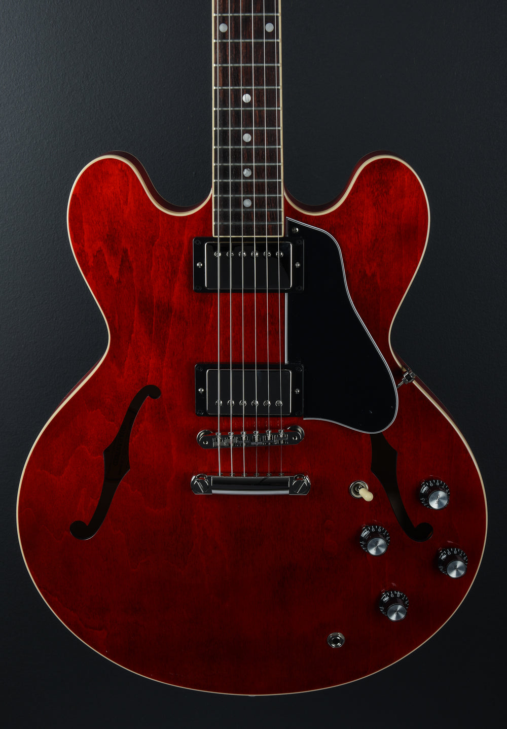 Sixties Cherry, Gloss nitrocellulose lacquer finish, Semi-hollow 3-ply Maple/Poplar/Maple body with a Maple centerblock, Rounded C shaped Mahogany neck, Bound 12” radius Rosewood fingerboard with the acrylic dot inlays and medium jumbo frets, 24.75" scale length, 1.7" nut width, Calibrated T-Type Lead bridge and Rhythm neck pickups, 3-way toggle switching with volume and tone controls for each pickup, ABR-1 tune-o-matic bridge and aluminum stopbar tailpiece, Gibson vintage deluxe tuners with the Keystone buttons, 7.8 pounds, With hardshell case