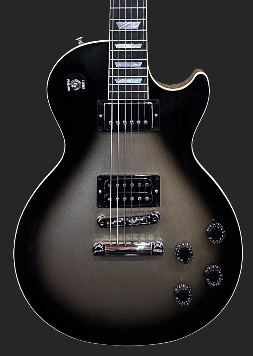 Antique Silverburst, Gloss nitrocellulose lacquer finish, Maple top on a Mahogany body, 70's rounded shaped Mahogany neck with the volute, Bound 12” radius Ebony fingerboard with the Mother of Pearl trapezoid inlays and medium jumbo frets, 24.75” scale length, 1.7″ nut width, DC High-Gain humbucking bridge and Burstbucker #1 neck pickups, 3-way toggle switching with the volume and tone controls for each pickup, Aluminum Nashville tune-o-matic bridge and stop tailpiece, Grover Rotomatic tuners, 9.8 pounds, With hardshell case
