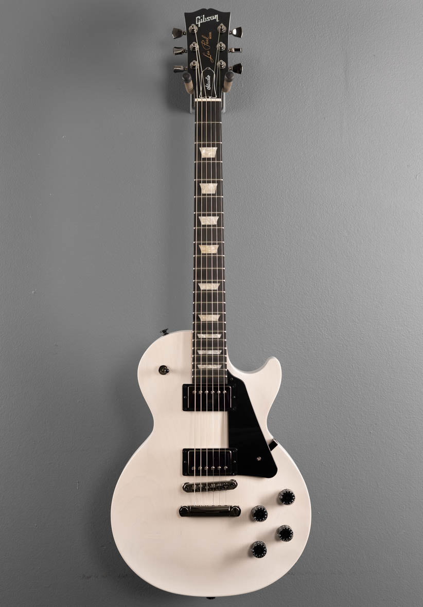 Worn White, Satin Nitrocellulose Lacquer finish, Maple Top on a Ultra Modern weight relieved Mahogany body, Bound 12"-16" Compound Radius Ebony fingerboard with Acrylic Trapezoid inlays and Medium Jumbo frets on a Slim Taper shaped Mahogany neck with Modern contoured heel, 24.75" scale length, 1.695" nut width, Gibson 490R neck and 498T Bridge pickups, 3 way switching with 2 Push/Pull Volume (Coil Tap) and 2 Push/Pull Tone (Phase & Pure Bypass), Aluminum Nashville Tune-O-Matic bridge and stop bar tailpiece, Grover Rotomatic tuners, 8.3 pounds, comes with Gibson soft case.