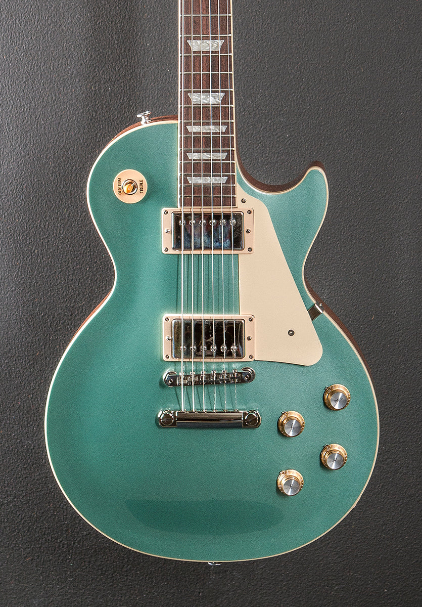 Inverness Green, Gloss nitrocellulose lacquer finish, Plain Maple top on a solid Mahogany body, Slim taper shaped Mahogany neck, Bound 12” radius Indian Rosewood fingerboard the the acrylic trapezoid inlays and medium jumbo frets, 24.75” scale length, 1.69" nut width, 60's Burstbucker bridge and neck pickups, 3-way toggle switching with the volume and tone controls for each pickup, ABR-1 tune-o-matic bridge and aluminum stop tailpiece, Grover Rotomatic tuners, 10.0 pounds, With hardshell case