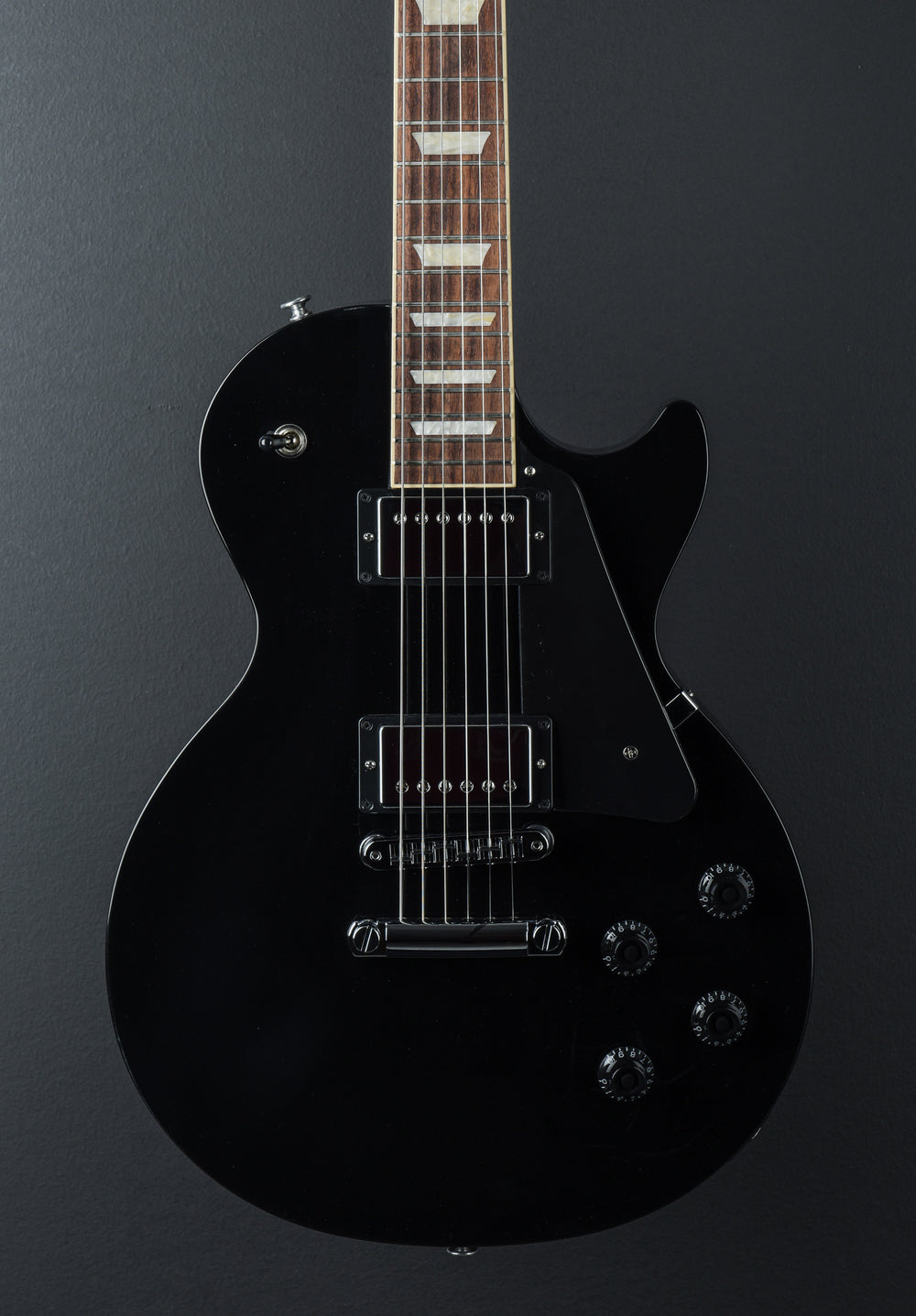 Ebony, Gloss nitrocellulose lacquer finish, Plain Maple top on an ultra-modern weight relieved Mahogany body, Slim taper shaped Mahogany neck, Bound 12” radius Indian Rosewood fingerboard with the acrylic trapezoid inlays and medium jumbo frets, 24.75" scale length, 1.69" nut width, Gibson Burstbucker Pro bridge and neck pickups, 3-way toggle switching with the push/pull coil tap volume and tone controls for each pickup, Aluminum Nashville tune-o-matic bridge and stopbar tailpiece, Gibson vintage deluxe tuners, 9.0 pounds, With a softshell case.