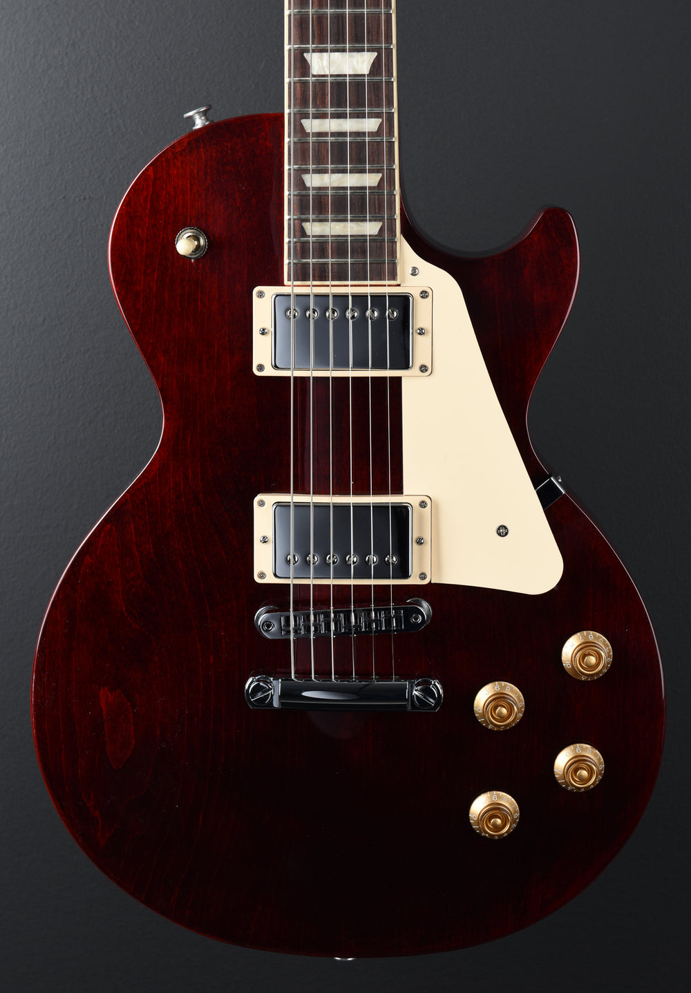 Wine Red, Gloss nitrocellulose lacquer finish, Plain Maple top on an ultra-modern weight relieved Mahogany body, Slim taper shaped Mahogany neck, Bound 12” radius Indian Rosewood fingerboard with the acrylic trapezoid inlays and medium jumbo frets, 24.75" scale length, 1.69" nut width, Gibson Burstbucker Pro bridge and neck pickups, 3-way toggle switching with the push/pull coil tap volume and tone controls for each pickup, Aluminum Nashville tune-o-matic bridge and stopbar tailpiece, Gibson vintage deluxe tuners, 8 pounds, With a softshell case