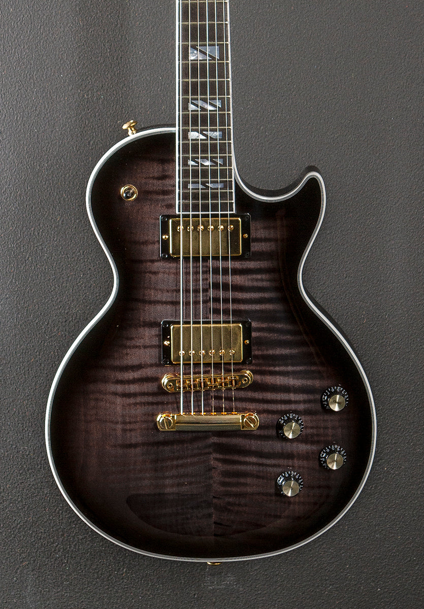 Translucent Ebony Burst, Gloss nitrocellulose lacquer finish, Multi-ply bound AAA figured Maple top, Mahogany body with the ultra-modern weight relief, Modern contoured heel neck joint, Slim taper shaped Mahogany neck, Bound compound radius Ebony fingerboard the Mother of Pearl Super Split Block inlays and medium jumbo frets, 24.75” scale length, 1.695" nut width, Burstbucker Pro Plus bridge and Burstbucker Pro neck pickups, 3-way toggle switching with the push/pull coil tap volume and push/pull pure bypass/phase tone controls for each pickup, Aluminum Nashville tune-o-matic bridge and stop tailpiece, Grover locking Keystone tuners, 8.6 pounds, With hardshell case