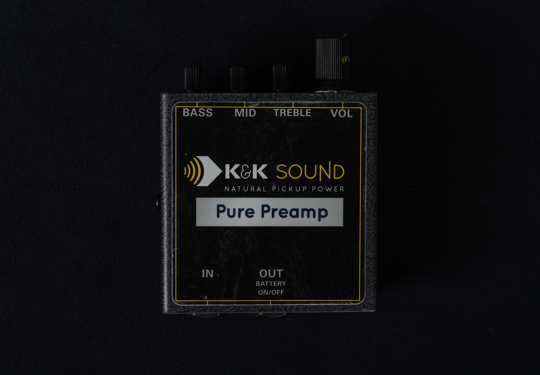 This guitar has had a K&K Pure Mini pickup system installed and a K&K Pure Preamp for use with this pickup is included.