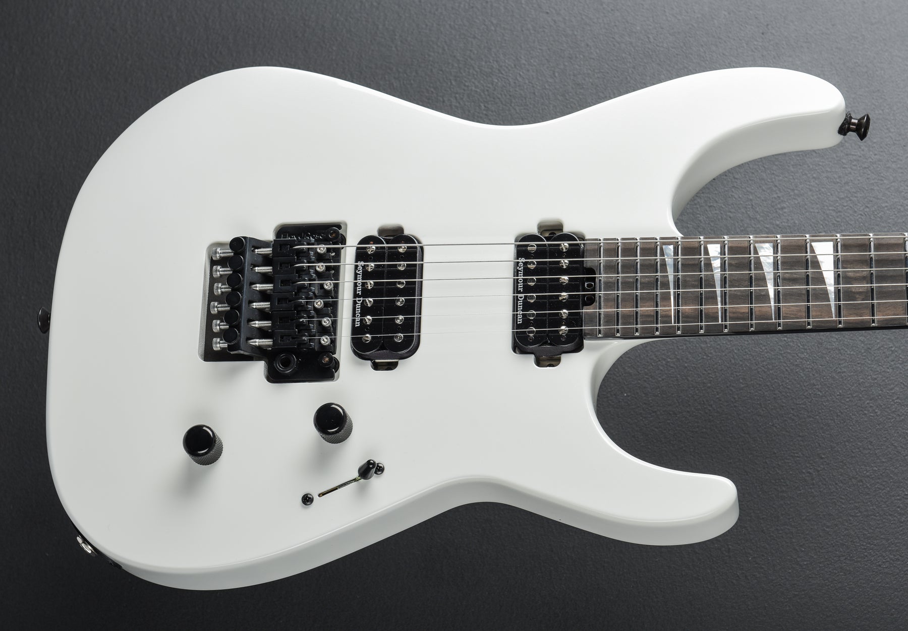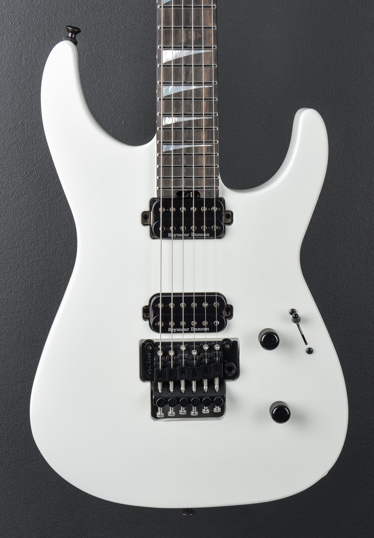 The HH pickup configuration features a Seymour Duncan® JB™ TB-4 humbucking bridge pickup that roars with hot-rodded attitude and a powerful low end, while the Seymour Duncan '59™ SH-1N neck pickup radiates with glassy treble tone and scooped mids that perform well across a multitude of genres. The intuitive control layout consists of a five-way blade switch, and dome-style knobs for volume and tone. Harness the sonic horsepower with a versatile five-way blade pickup switch and single volume and tone controls. Other premium features include a Floyd Rose® 1500 Series double-locking tremolo bridge system for reliable tuning stability throughout daring and aggressive playing theatrics, Gotoh® MG-T locking tuners and Dunlop® dual-locking strap buttons.