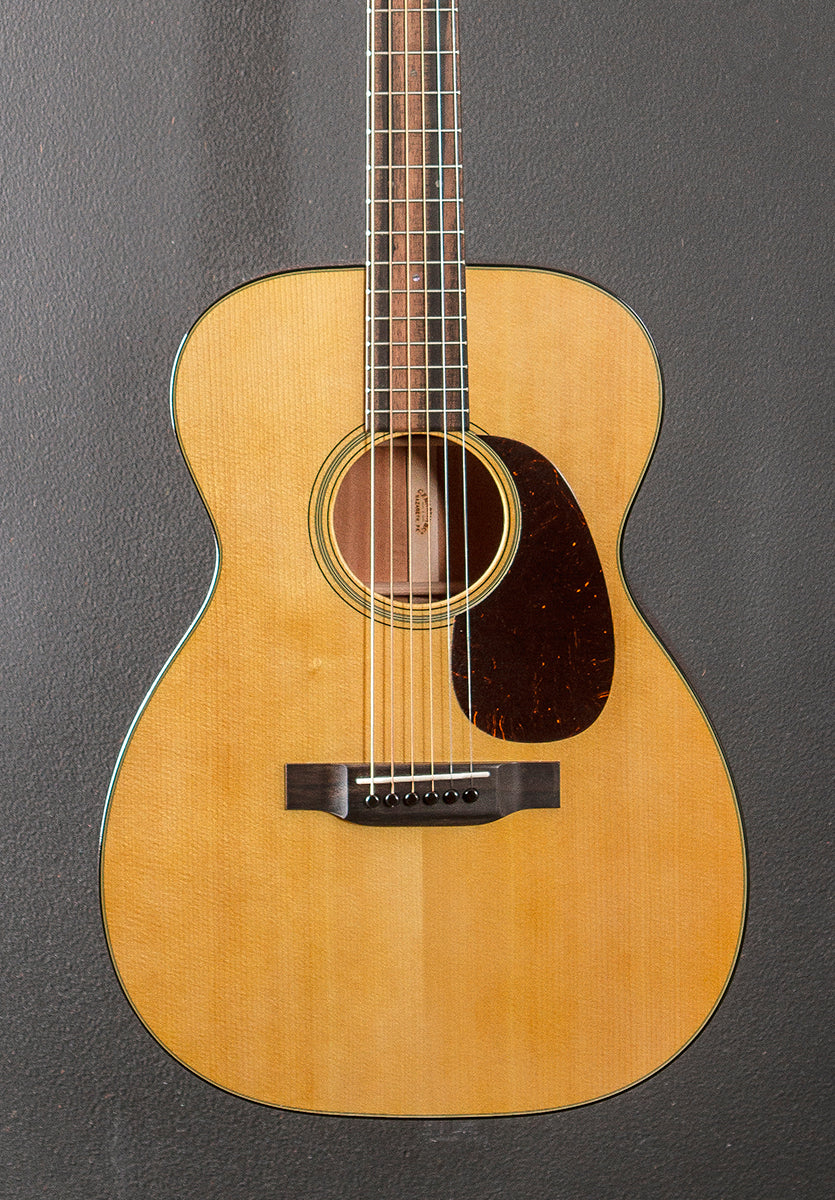 "The 00-18 is an updated version of the the popular 00-18V. A Sitka spruce top and mahogany back and sides are the foundation for this classic grand concert model. A modified low oval high performance neck, East Indian rosewood headplate and an ebony fingerboard and bridge complete this model and make it a guitar you will treasure for years to come."