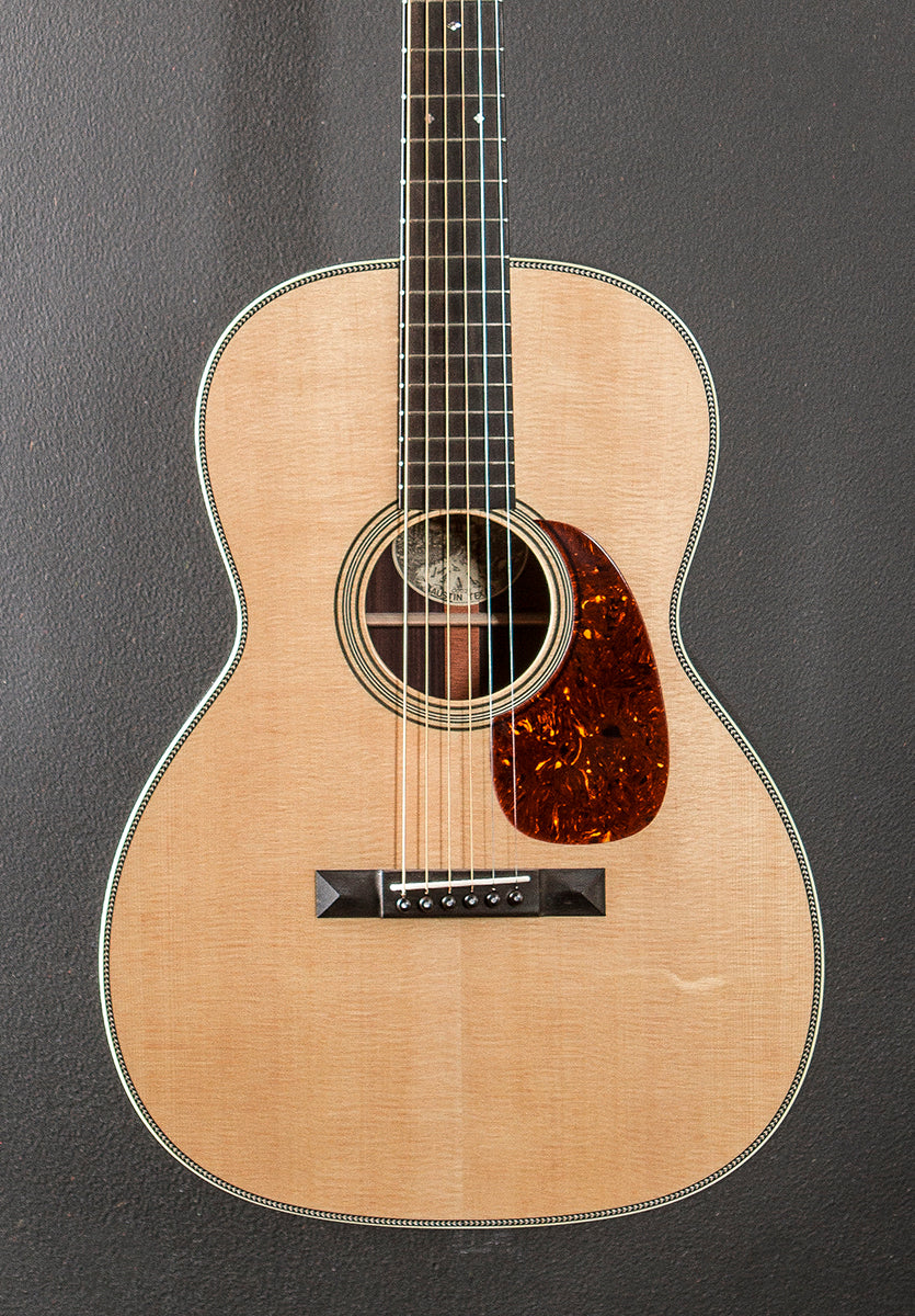 "The 12-fret 000 has the same general appearance as the Collings 00, but in a larger size with longer string scale. Although it's the same width and depth as the OM, the longer body typically produces more bass and overall volume. This makes the Collings 000 ideal for string-band purists or any guitarist who wants a maximum of power from an instrument of comfortable size with an elegant, old-time appearance. Along with the usual options in woods, binding, and inlay , it is also available with a graceful cutaway."