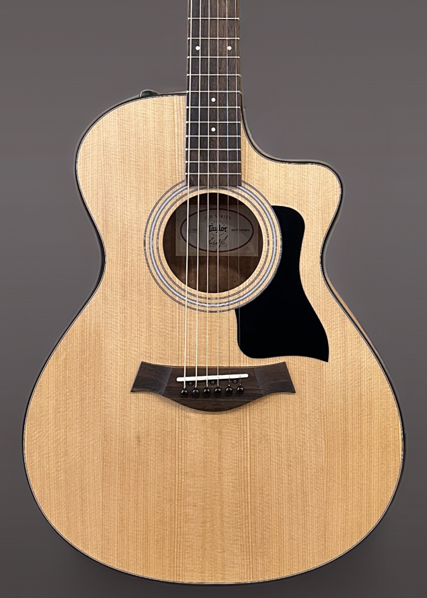 "Players love our cutaway Grand Concert acoustic guitars for their articulate sound and compact dimensions, and the 112ce fits the bill at a price point that's especially ideal for new players. A solid spruce top delivers bold, punchy sound with a balanced, clean character, making it a great choice for fingerstyle players as well as flatpickers and strummers. New and experienced players alike will appreciate the responsive, relaxed feel of the slender Taylor neck, and with ES2 electronics on board, you're guaranteed authentic acoustic tone whenever you need to plug in to an amplifier or PA. A lightweight yet sturdy structured gig bag provides ample protection for carrying the 112ce between home, lessons and wherever else your music takes you."