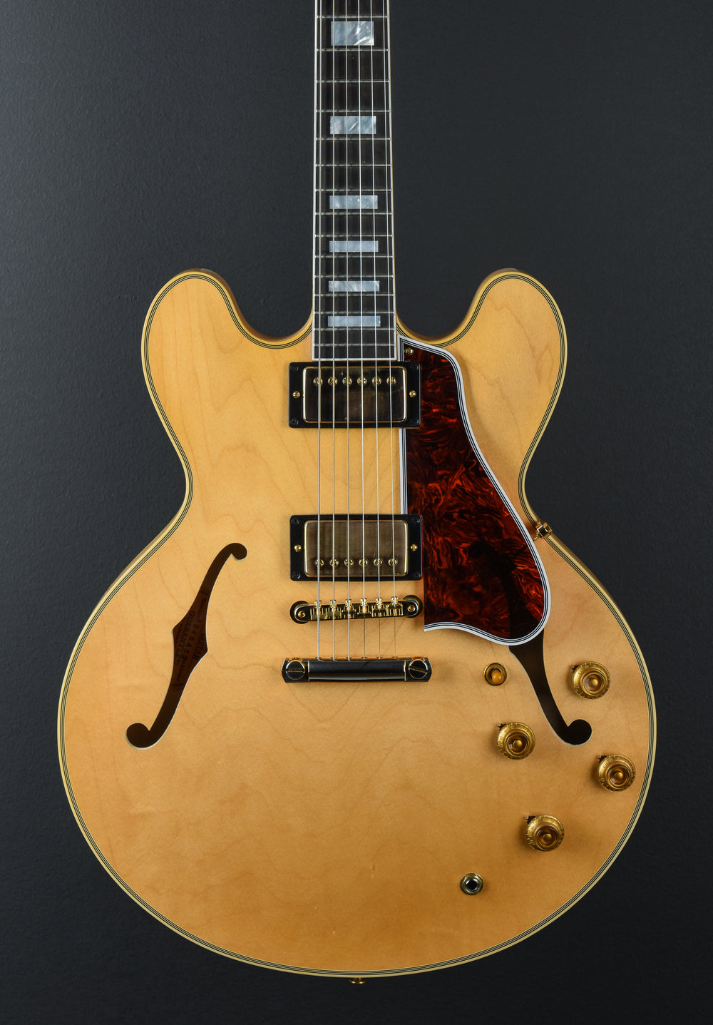 "What could be better than the legendary ES-355? The ES-355! The ES-355 starts with all the features that make the ES-335 iconic - the feedback-resistant semi-hollowbody construction, the two humbucking pickups with individual volume and tone controls, the legendary sonic versatility and exceptional playability - and kicks it into overdrive with an ebony fretboard that's adorned with 50s pattern mother of pearl block inlays and 22 authentic medium jumbo frets. A split diamond headstock inlay, multi-ply binding, and gold hardware further reinforce the fact that the ES-355 is the top of the line ES™ model. This expertly crafted Custom Shop rendition's attention to detail makes it an outstanding recreation of the legendary and highly-prized 1959 ES-355. A five latch Lifton™ case is also included."