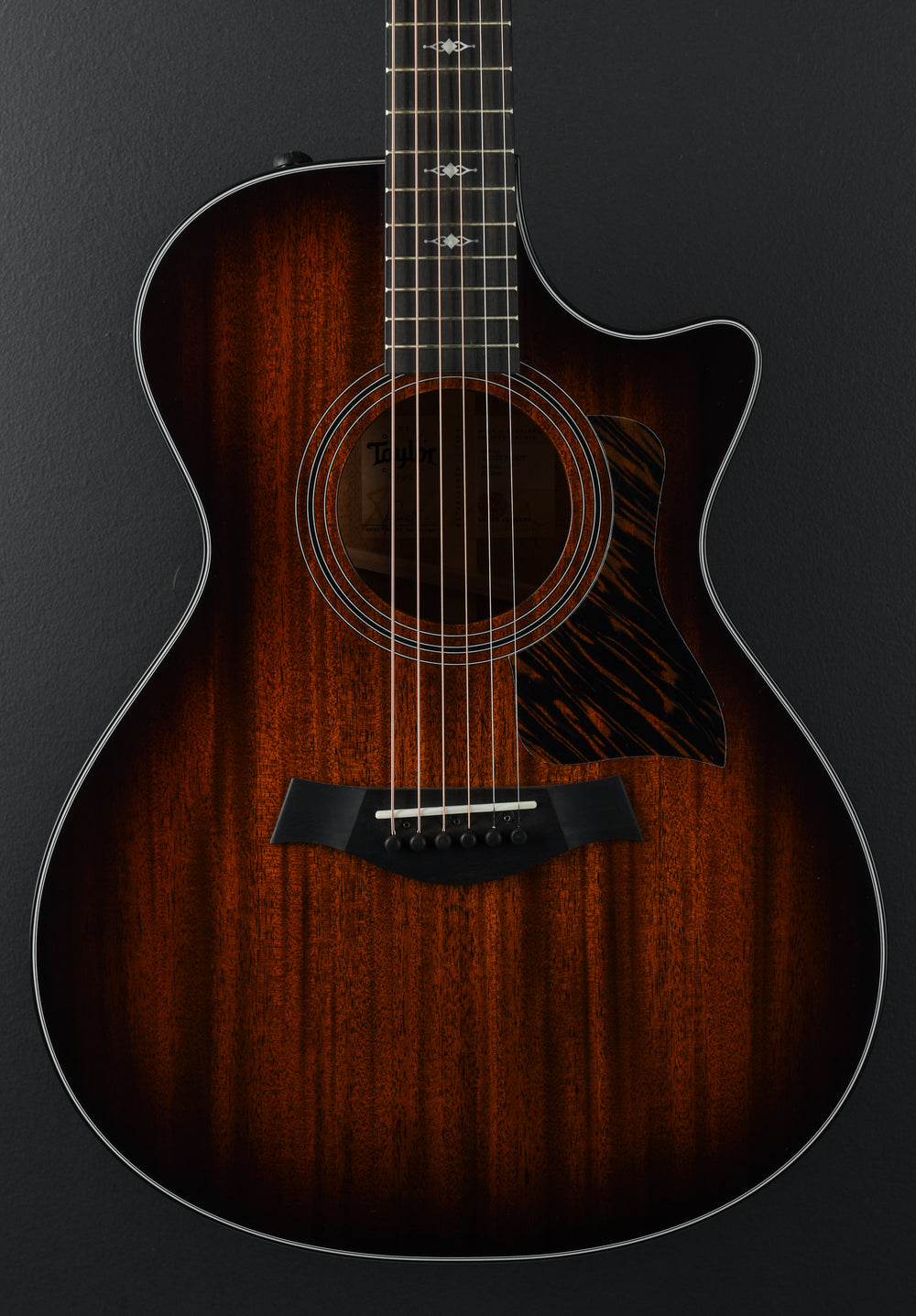 Very Good Condition, Shaded Edgeburst Top, Grand Concert Body Shape with the Venetian Cutaway, Tropical Mahogany Top, Black Three Ring Plastic Rosette, V-Class Bracing, Tropical Mahogany Back and Sides, Black Binding, West African Crelicam Ebony Fingerboard with the Faux Pearl Gemstone Inlays on a Tropical Mahogany Neck, 24 7/8th” Scale Length, 1 3/4” Nut Width, with the Expression 2 Pickup System and Hardshell Case.