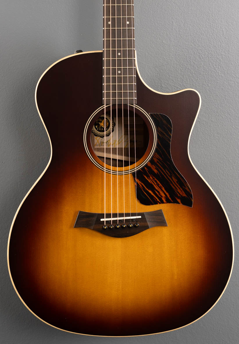 "The 50th Anniversary AD14ce-SB LTD embodies five decades of Taylor history. The Sitka spruce /walnut tonewood pairing traces back to Bob Taylor’s earliest guitars, many of which were crafted in the humble workshop that gave the American Dream Series its name. That combination yields a warm, woody midrange response with clear projection and articulation, enhanced with improved volume and sustain thanks to the V-Class bracing inside. Following the distilled, neo-vintage design ethos of its American Dream counterparts, this limited-edition model features chamfered body edges, clean Italian acrylic dot inlays, a firestripe pickguard and a thin matte finish with a hand-sprayed tobacco sunburst top treatment. This highly versatile Grand Auditorium includes a commemorative interior label and ES2 electronics. It ships with a lightweight, yet super-durable AeroCase."