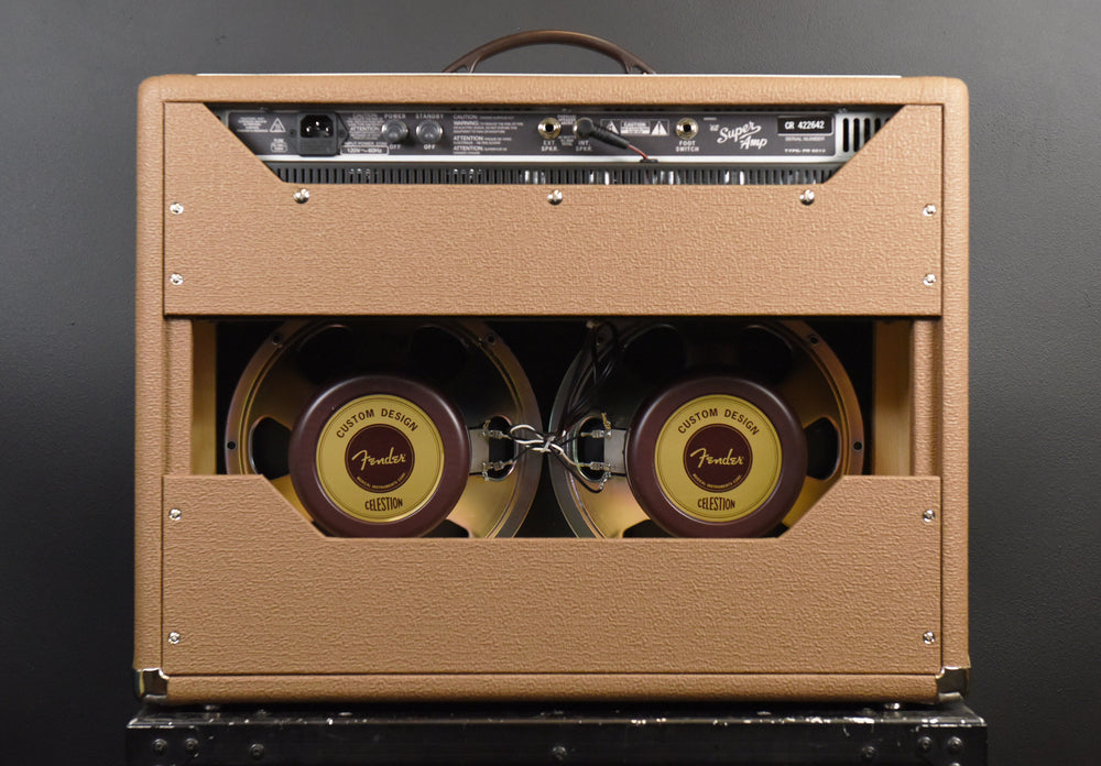 The first of the Fender® brown panel models, the '62 Super™ has an incredibly warm and woody sound when played clean blooming into sweet overdrive when cranked. Along with its special phase-shifting harmonic tremolo, this amp dishes out phenomenal tone at any volume. With dual 6L6 power tubes pushing 40 watts through two 10" Celestion® Custom Design speakers, the '62 Super™ is ideal for recording and gigging.