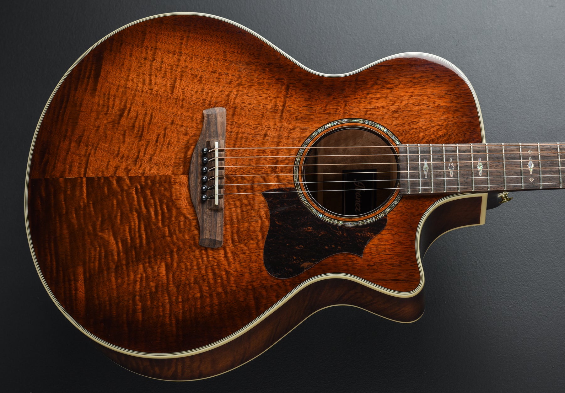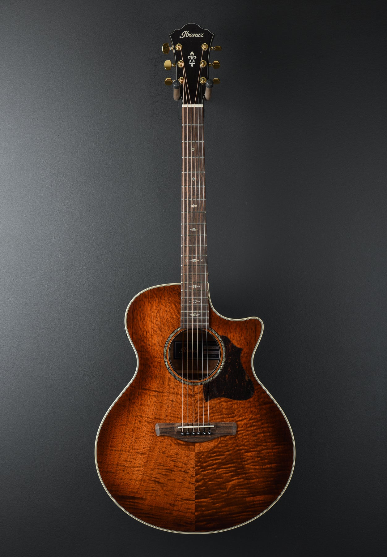 Very Good Condition, Mahogany Sunburst High Gloss Finish, Solid Flamed Okoume Top, Flamed Okoume Back and Sides, AE Body Shape with X-M Bracing, Nyatoh Comfort Grip Neck with Rounded Fretboard Edge, 25.6" Scale Length, 20 Frets, Rosewood Fretboard, Rosewood Scalloped Bridge, Abalone and Wooden Rosette with Soundhole Binding, 1.73" Bone Nut, Compensated Bone Saddle,  Ibanez T-bar Undersaddle Pickup, Comes with a Gig Bag.