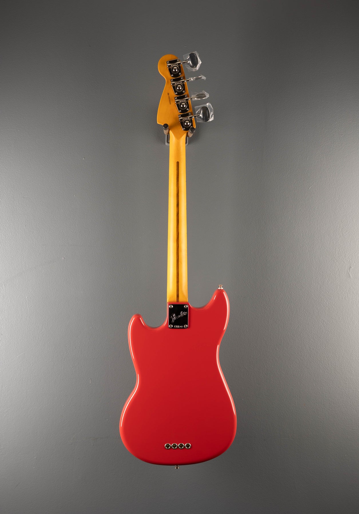 Faded Dakota Red, Gloss urethane body finish, Alder body, Modern C shaped Maple neck with a 9.5" radius Maple fingerboard and medium jumbo frets, 30" scale length, 1.625" nut width, Coastline Mustang Bass pickup with the master volume and tone controls, String thru body Mustang bridge with the barrel steel saddles, Vintage style Lollipop tuners, 8.5 pounds, With gig bag