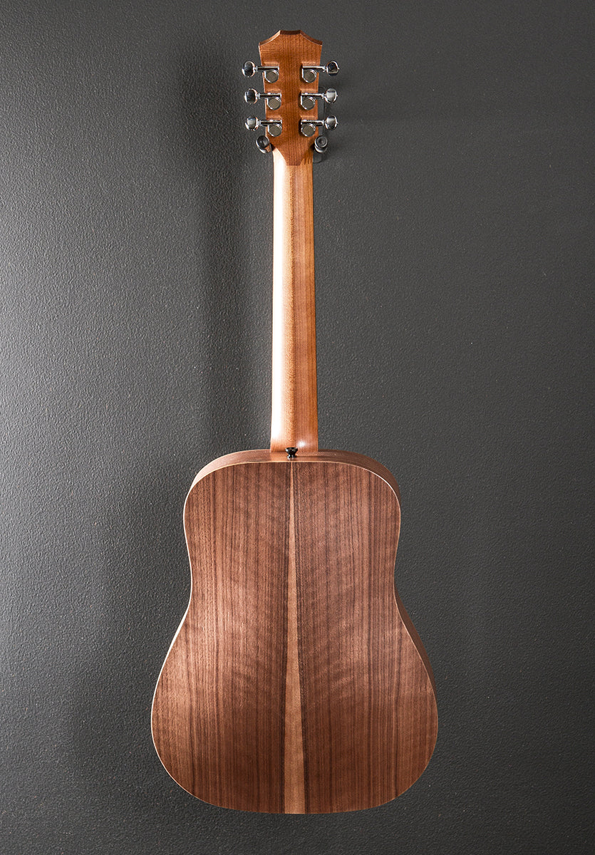 Natural, Matte finish, 3/4 Dreadnought body shape, Torrefied Spruce top, Single Ring Plastic Rosette, X bracing, Layered Walnut back and sides, Ebony fingerboard with the Italian Acrylic 4mm dot inlays on a Hard Rock Maple neck, 22 3/4″ scale length, 1 11/16th” nut width, Cast/sealed tuners, The neck thickness is .83″ at the first and .85″ at the 9th frets, With gig bag, Excellent