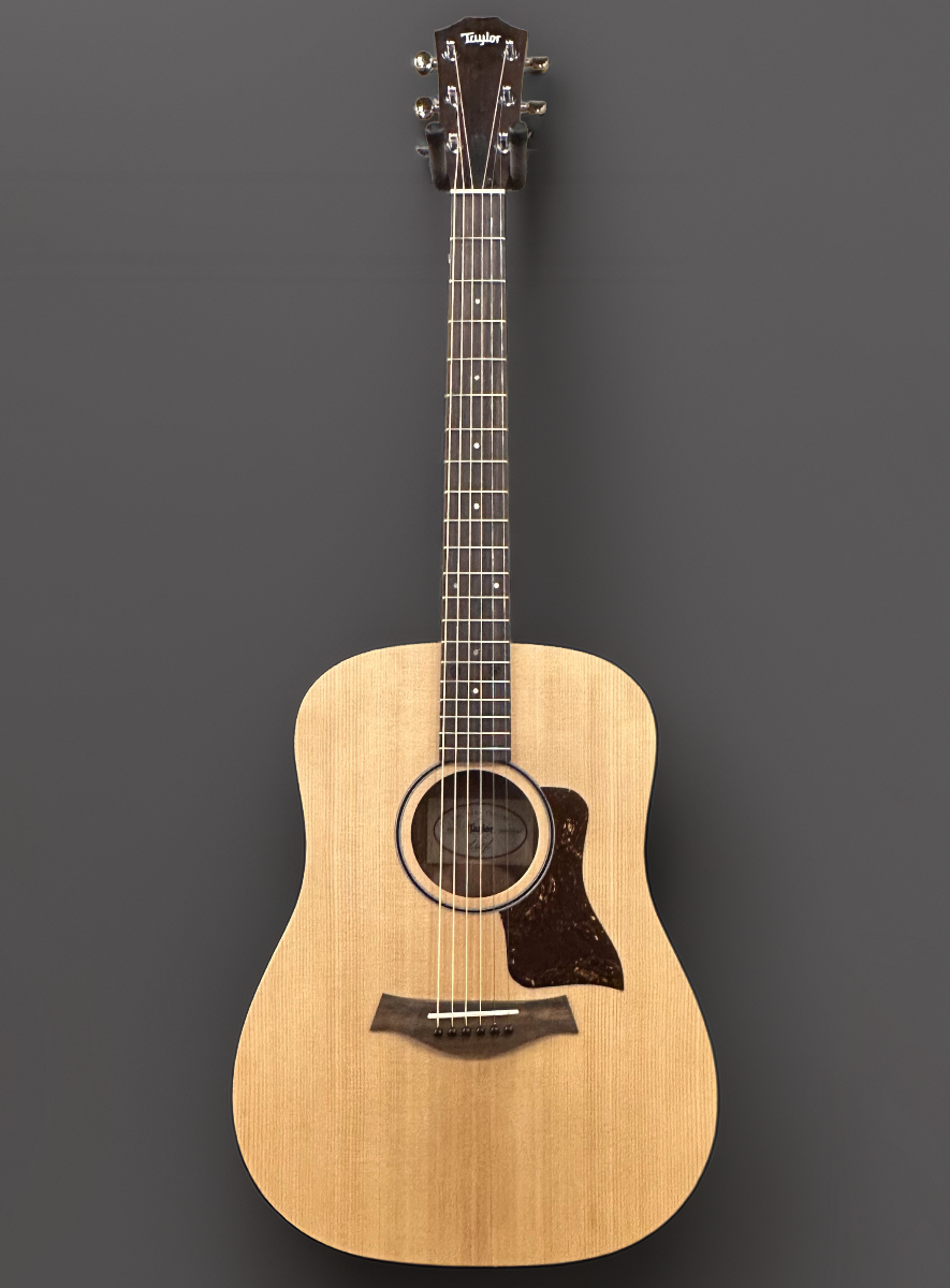 "The Big Baby Taylor has a long history of helping countless new guitar players get started on their musical journeys. Built for a relaxed, accommodating feel from body to peghead, this slightly smaller-than-standard acoustic guitar sits comfortably in your lap while playing, offering an easy-playing experience for budding guitarists and seasoned players alike. The solid spruce top generates a punchy, bold acoustic sound that's perfect for everything from at-home practice sessions to lessons and jam sessions with friends, and the included gig bag makes it easy to carry your guitar anywhere."