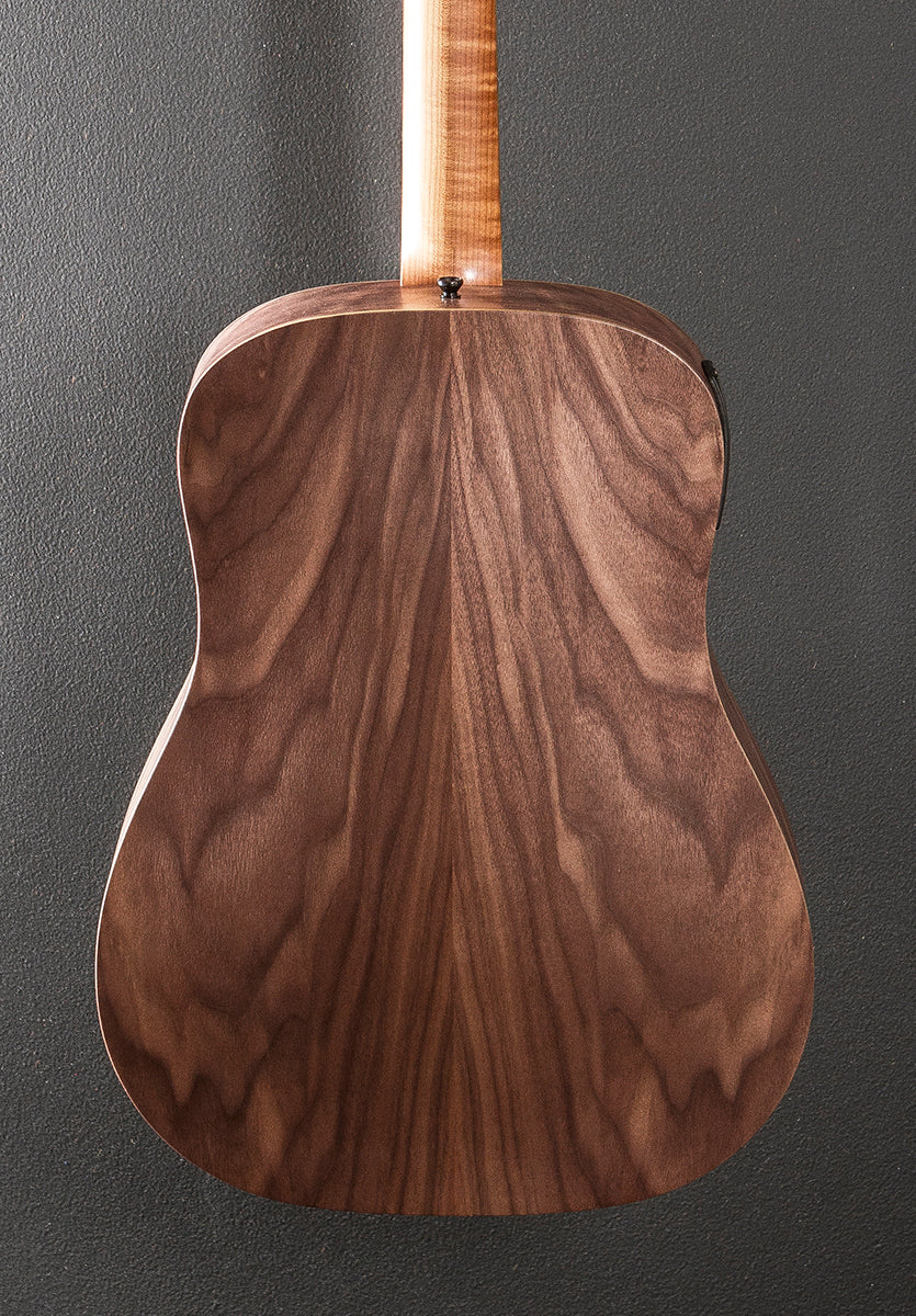 Natural, Matte finish, 15/16th Big Baby Dreadnought body shape, Torrefied Spruce top, Single Ring Plastic Rosette, X bracing, Layered Walnut back and sides, Eucalyptus fingerboard with the Italian Acrylic 4mm dot inlays on a Hard Rock Maple neck, 25.5″ scale length, 1 11/16th” nut width, Cast/sealed tuners, The neck thickness is .83″ at the first and .88″ at the 9th frets, With the ES-B pickup system and gig bag, Excellent