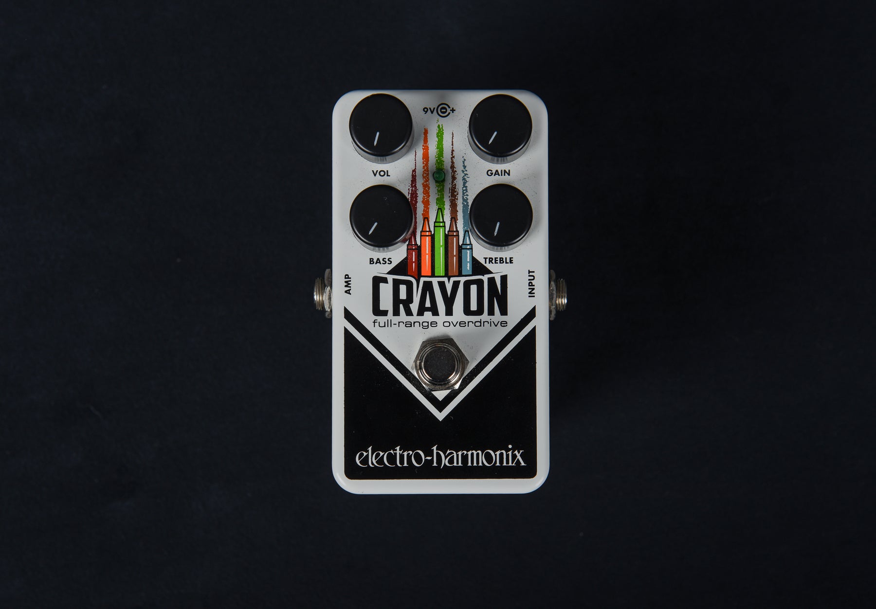 "The EHX Crayon Full-Range Overdrive is a versatile overdrive with independent Bass and Treble controls and an open frequency range that provides players with a musical alternative to customary mid-focused overdrive pedals. It delivers a range of sounds going from a suggestion of dirt to full-on distortion and is equally impressive all by itself or when driving another overdrive pedal."