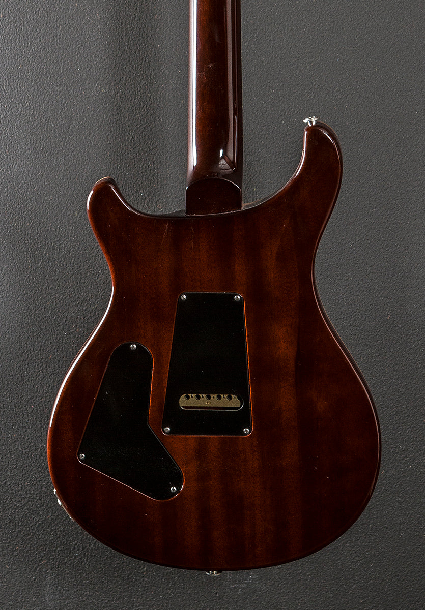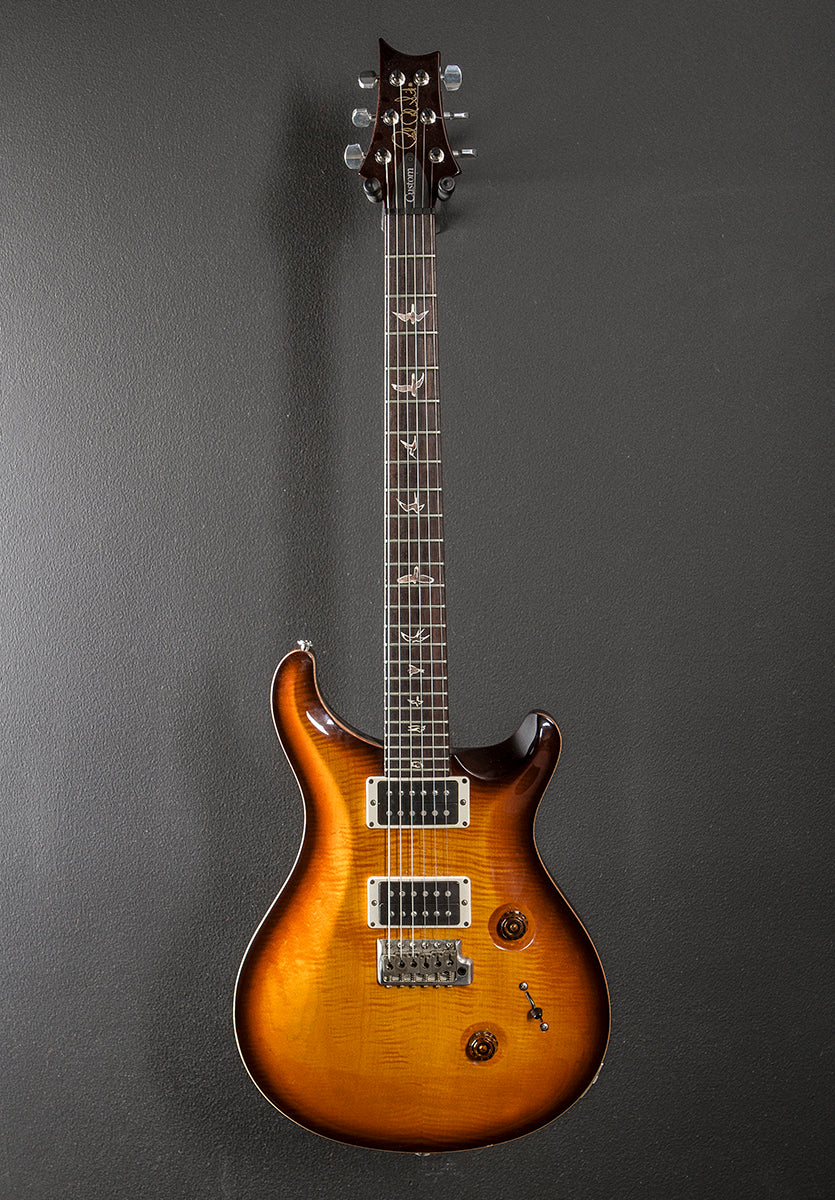 Tobacco Sunburst, Gloss finish, Violin carved figured Maple top, Mahogany body, Pattern Thin carved Mahogany neck, 10″ radius Rosewood fingerboard with the Bird inlays, 25″ scale length, 1 11/16th” nut width, PRS 59/09 bridge and neck pickups, 5-way blade switching with the master volume and tone controls, PRS tremolo and PRS locking tuners, The neck thickness is .81″ at the first and .87″ at the 12th frets, 7.8 pounds, With the PRS hardshell case, Very good