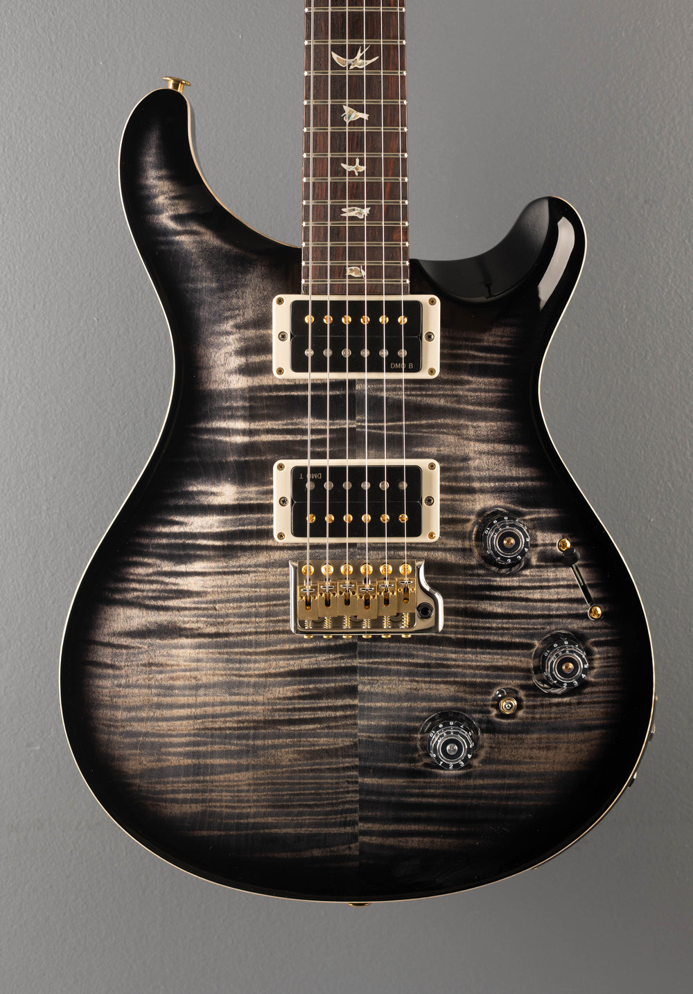 Charcoal Burst, High gloss nitro finish, Violin carved Flame Maple 10 top, Mahogany body, Pattern Thin carved Mahogany neck, 10″ radius Rosewood fingerboard with the Bird inlays, 25″ scale length, 1 11/16th” nut width, 85/15 bridge and neck pickups plus the PRS/L.R. Baggs piezo system, 5-way blade switching with the volume and tone controls plus a 3-way selector and blend knob for the piezo system, PRS patented Gen III piezo tremolo, PRS Phase III locking tuners with the wing buttons, 7.8 pounds, With hardshell case