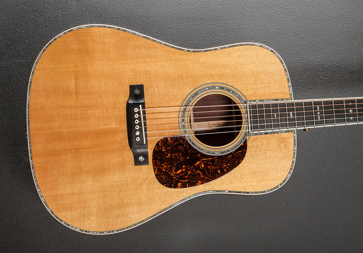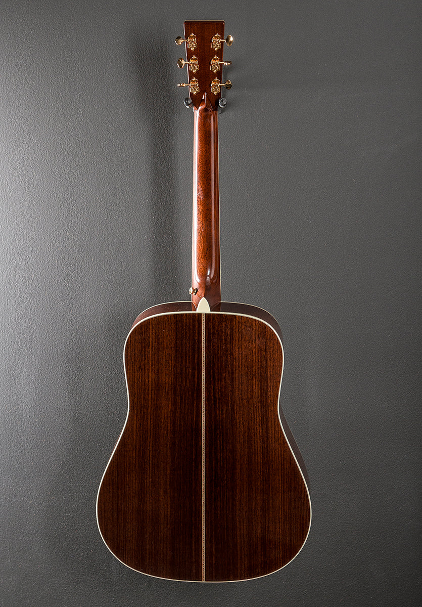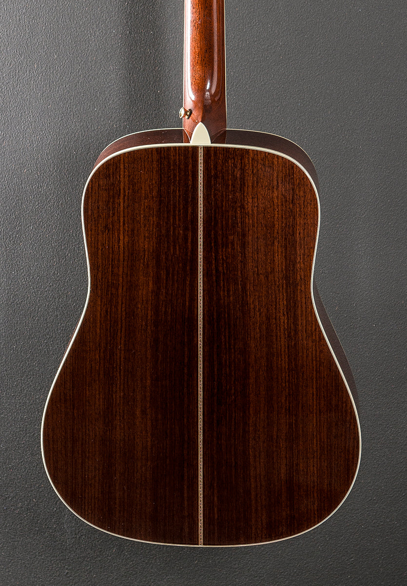 Natural, Gloss finish, D-14 Fret body shape, Sitka Spruce top, Abalone with multi-stripe Rosette, Scalloped forward shifted X bracing, East Indian Rosewood back and sides, Antique White binding with the Abalone w/multi-stripe top and multi-stripe back inlay, Style 45 back purfling, Modified low oval shaped Mahogany neck, Bound 16" radius Ebony fingerboard with the Abalone Style 45 Snowflake position markers and medium frets, 25.4” scale length, 1 11/16th″ nut width, Open gear tuners, The neck thickness is .83″ at the first and .88″ at the 9th frets, With the Martin hardshell case, Very good