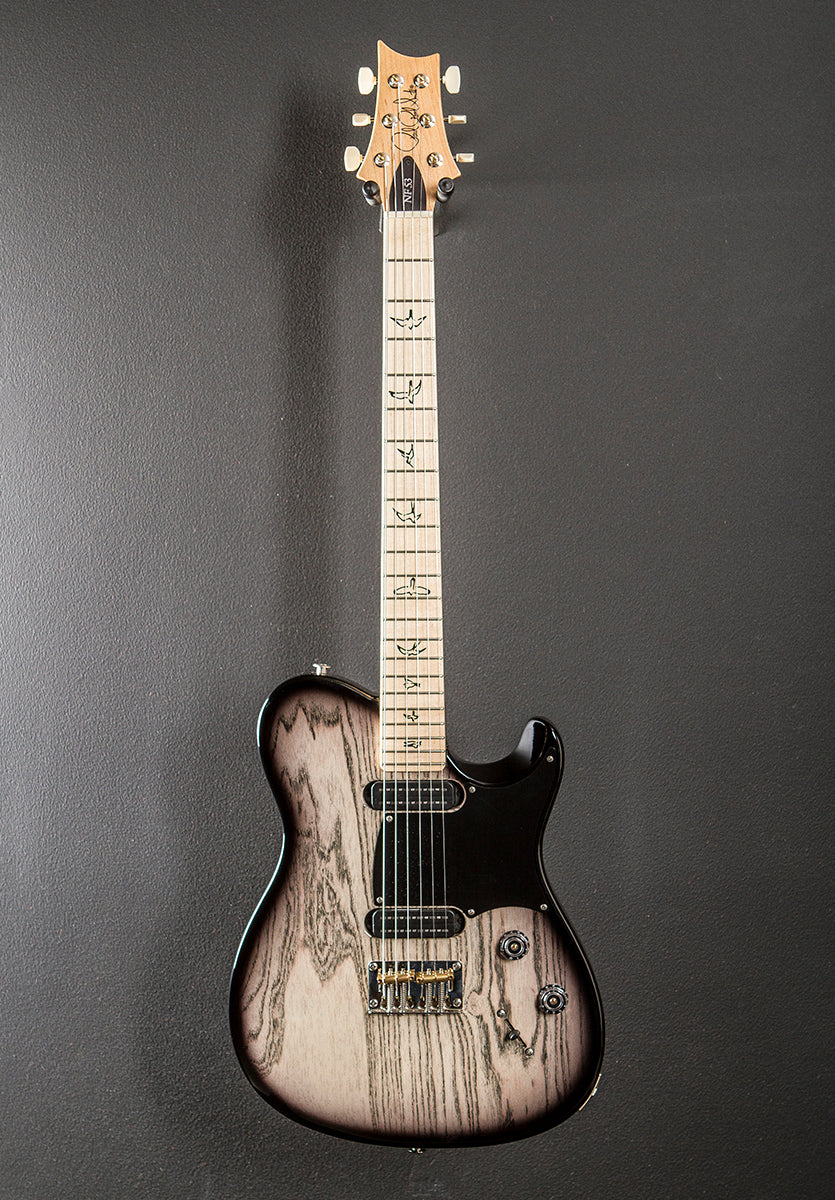 White Doghair Smokeburst, High gloss nitro body finish, Swamp Ash body, Pattern 53 shaped Maple neck with a 10” radius Maple fingerboard and the Bird inlays, 25.5” scale length, 1 41/64th" nut width, PRS Narrowfield DD bridge and neck pickups, 3-way blade switching with the master volume and tone control, PRS plate style steel bridge with the two compensated brass barrel saddles, PRS Phase III non-locking tuners with the wing buttons, The neck thickness is .85″ at the first and .97″ at the 12th frets, 7.0 pounds, With gig bag, Excellent