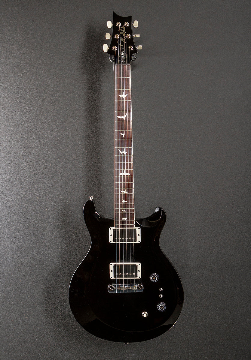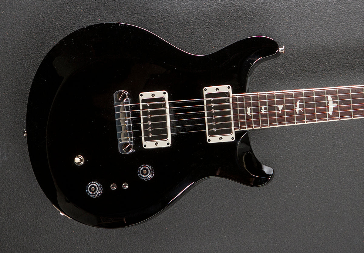 Black, High gloss nitro finish, Mahogany body with an asymmetric beveled top, Pattern Thin carved Mahogany neck, 10″ radius Rosewood fingerboard with the Bird inlays and faux bone binding, 24.594” scale length, 1 11/16th" nut width, PRS 58/15 LT bridge and neck pickups, 3-way toggle switching with the master volume and tone controls plus the two mini-toggle coil tap switches, PRS stoptail bridge with the brass inserts, PRS Phase III non-locking tuners with the wing buttons, The neck thickness is .83″ at the first and .93″ at the 12th frets, 7.0 pounds, With gig bag, Very good