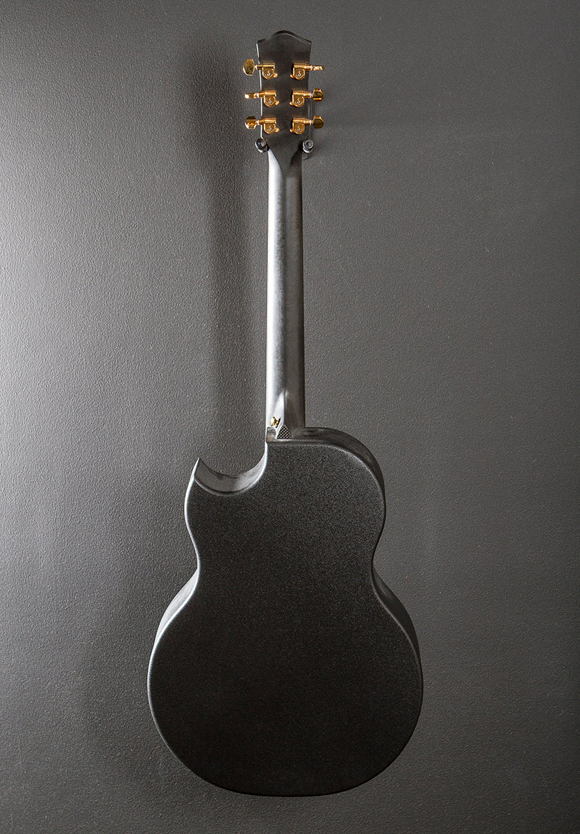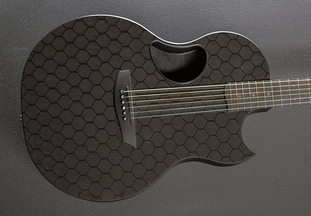 Crafted in Sparta, WI., 4″ deep body, Proprietary carbon fiber body with a Honeycomb pattern gloss top, Offset signature soundhole, Carbon fiber bracing, Soft V shaped carbon fiber neck with a 12” radius fingerboard and medium frets, 25.5” scale length, 1.75″ nut width, Schaller tuners, The neck thickness is .81″ at the first and .85″ at the 9th frets, With the custom L.R. Baggs pickup system and Reunion Blues gig bag, Excellent