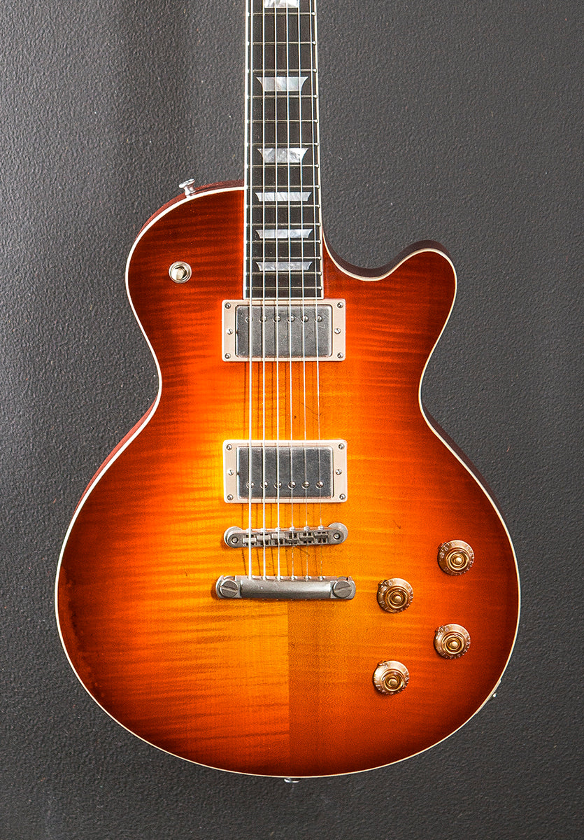 Antique Red Burst, Antique varnish finish, Solid Flame Maple top, One piece Mahogany body, Ivoroid binding, Bound 12” radius Ebony fingerboard with the Pearl Crown inlays on a one piece Mahogany neck, 24.75" scale length, 1 11/16th" nut width, Lollar custom aged/wound Imperial humbucking bridge and neck pickups, 3-way toggle switching with the volume and tone controls for each pickup, Gotoh tune-o-matic bridge and stop tailpiece, Gotoh SD90 tuners, 8.8 pounds, With hardshell case
