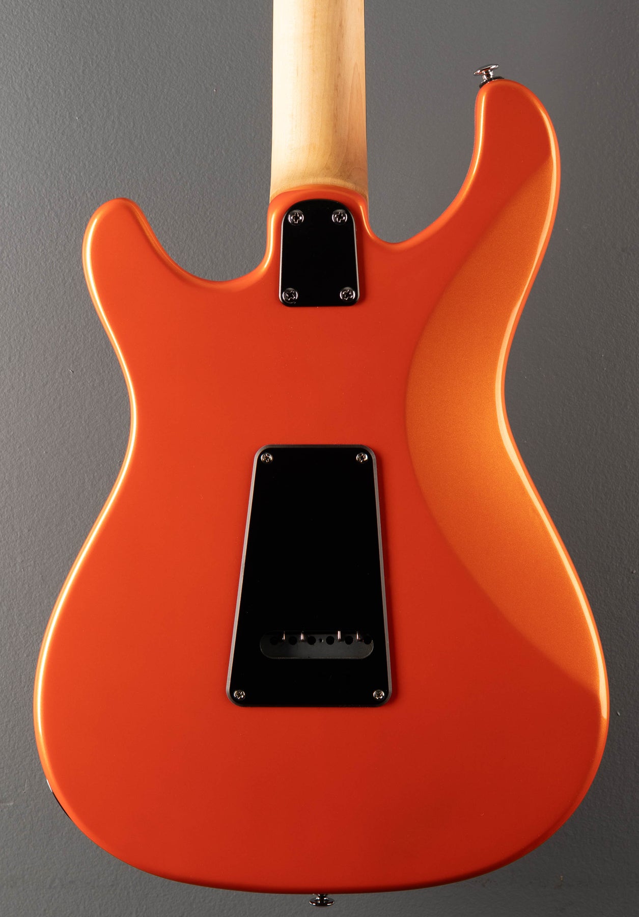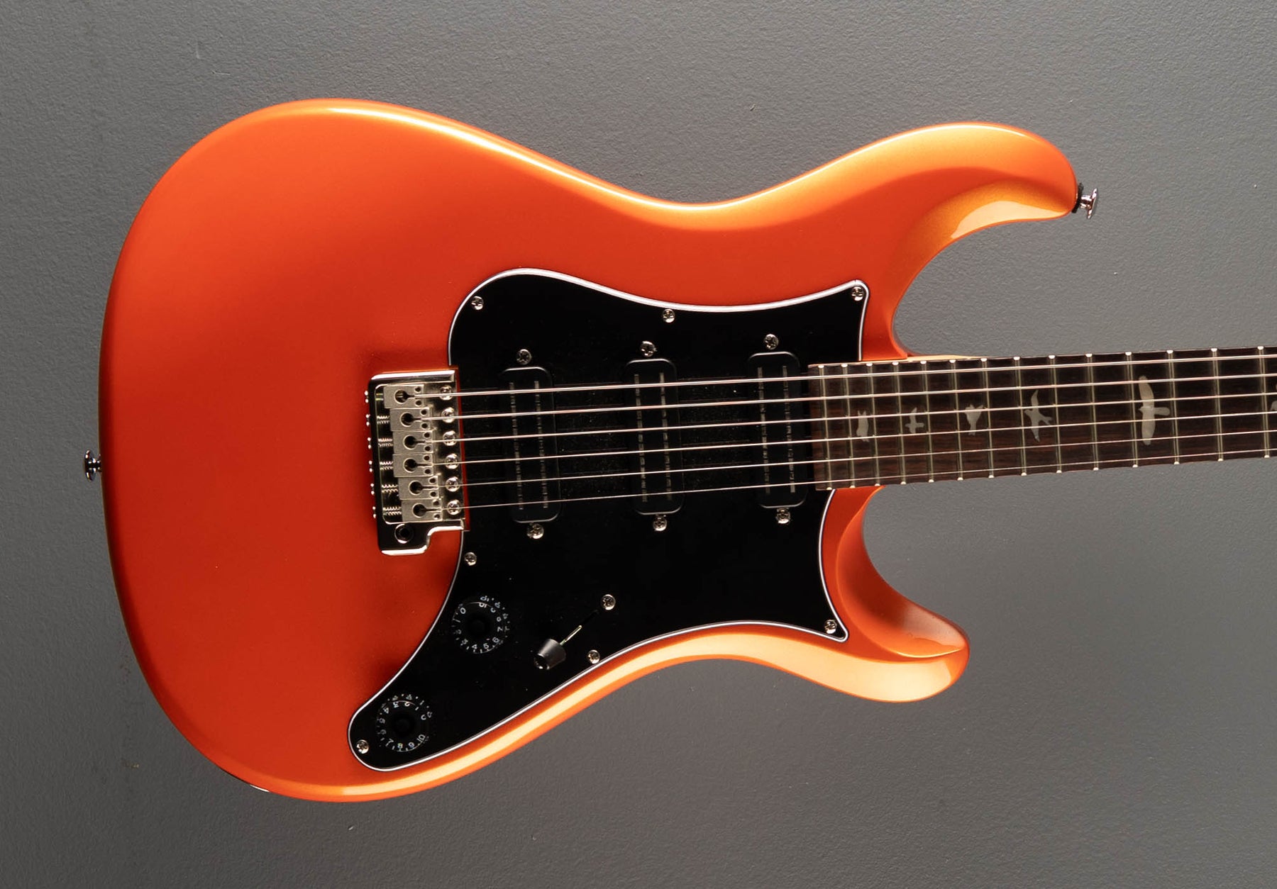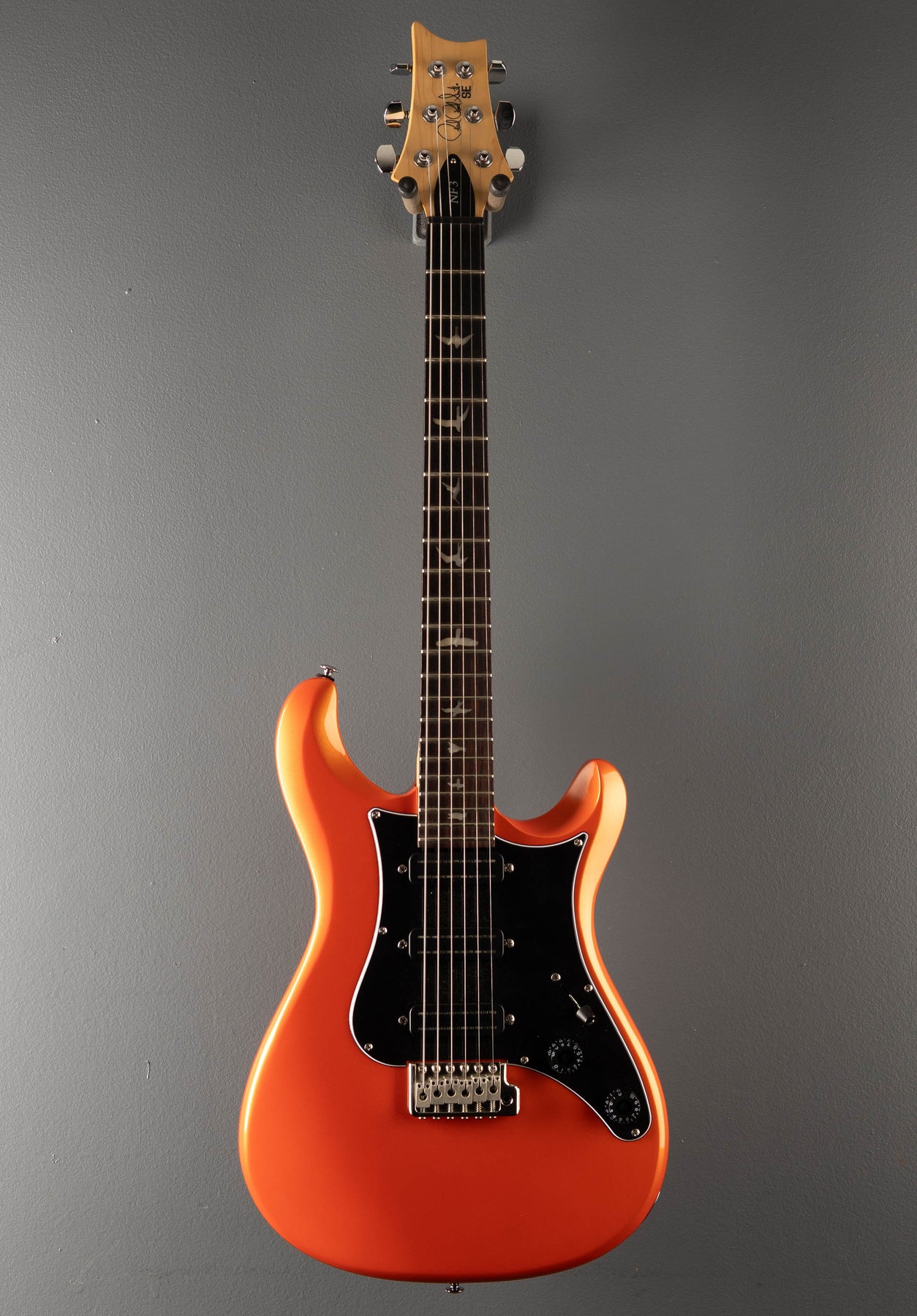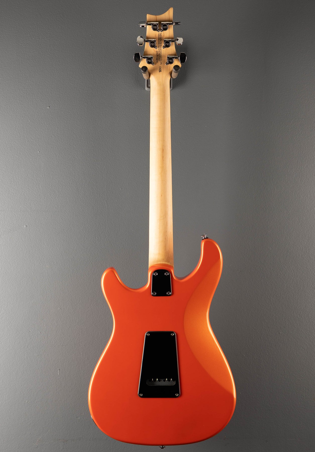 Very Good condition, Metallic Orange, Poplar body, Wide/Thin carved bolt-on Maple neck, 10″ radius Rosewood fingerboard with the Bird inlays, 25″ scale length, 1 11/16th″ nut width, PRS Narrowfield DD "S" pickups, 5-way blade switching with the master volume and tone controls, PRS patented molded tremolo and PRS designed tuners, 7.4 pounds, With gig bag.