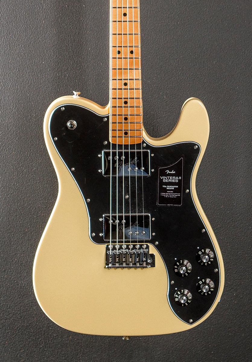 The Vintera® II '70s Telecaster® Deluxe with Tremolo features an alder body and a maple neck for classic Fender tone that's full of punch and clarity. The "U" shape neck is based on the classic '70s profile and offers a remarkably comfy feel, while the 9.5" radius fingerboard with vintage-tall frets provides vintage comfort with ample room for big bends and expressive vibrato. Under the hood, you'll find a pair of vintage-style '70s wide-range humbuckers that deliver all the sweet and sparkling, warm and woody tone that made Fender famous. The vintage-style synchronized tremolo lets you dive and wail with abandon, while vintage-style Telecaster® Deluxe tuning machines provide classic looks with a finer gear ratio and enhanced tuning stability to complete the package.