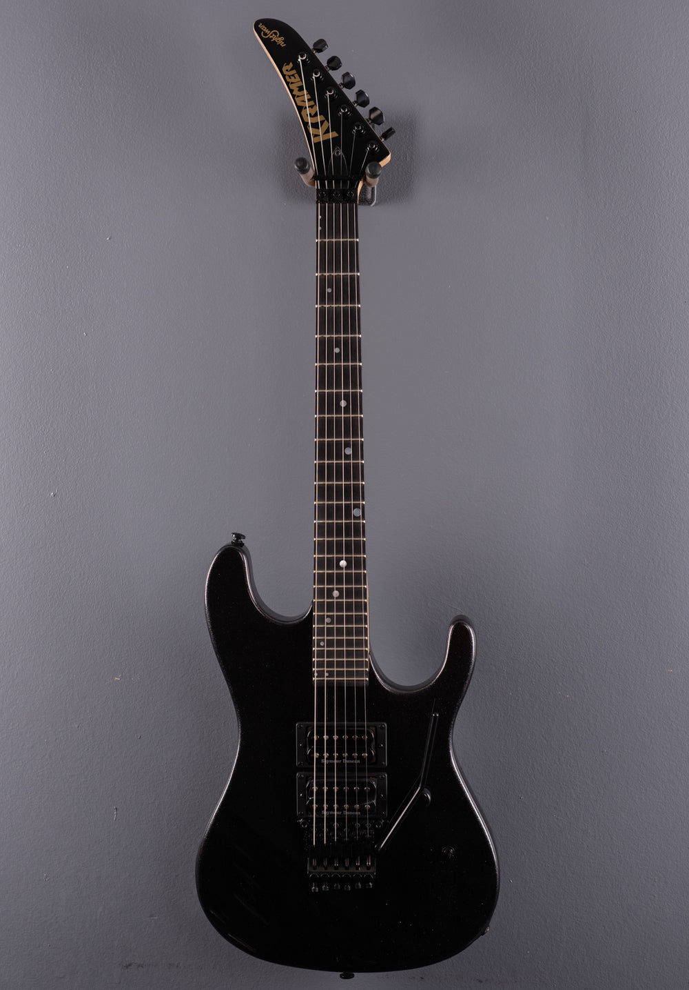 Jet Black Metallic, Mahogany body, 16” radius Ebony fingerboard with the White Pearloid Dots inlays and Medium Jumbo frets on a C-Shaped Maple neck, 24.75” scale length, 1.63" (41.28mm) nut width, Seymour Duncan JB bridge and middle pickups with 3 way mini toggle switching, Floyd Rose 1000 Series Tremolo bridge, Kramer Deluxe 14:1 Ratio tuners, 7.1 pounds, Case not included.