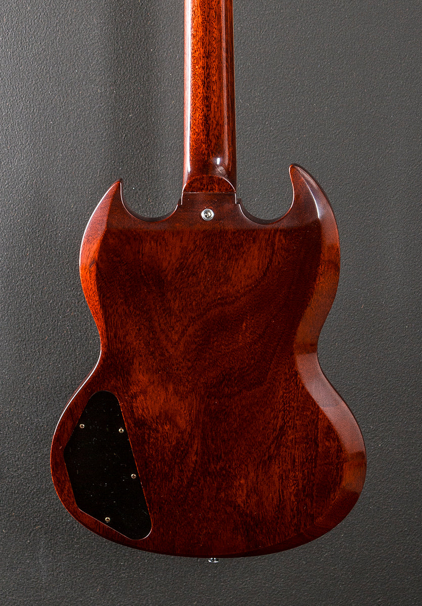 "A 1960s SG has been the favorite of some of the most iconic guitarists ever...Angus Young, Tony Iommi, Robby Krieger, George Harrison, Dickey Betts, Gary Rossington, and Eric Clapton, to name a few. The SG's devilish points and curves, blistering humbucker tone and fast-playing neck help to make it one of the most coveted and revered 1960s Gibson models. This Custom Shop Historic Reissue SG continues the legendary magic of the originals with all solid woods, historic hide-glue construction methods, the finest vintage replica parts and materials available and the instantly-recognizable, powerful tone of pure rock 'n roll."
