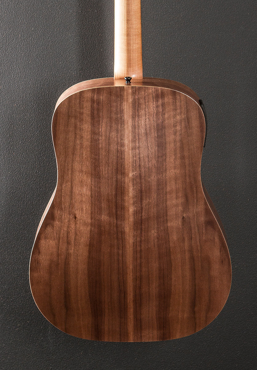 Natural, Matte finish, 15/16th Big Baby Dreadnought body shape, Torrefied Spruce top, Single Ring Plastic Rosette, X bracing, Layered Walnut back and sides, Eucalyptus fingerboard with the Italian Acrylic 4mm dot inlays on a Hard Rock Maple neck, 25.5″ scale length, 1 11/16th” nut width, Cast/sealed tuners, The neck thickness is .82″ at the first and .87″ at the 9th frets, With the ES-B pickup system and gig bag, Excellent