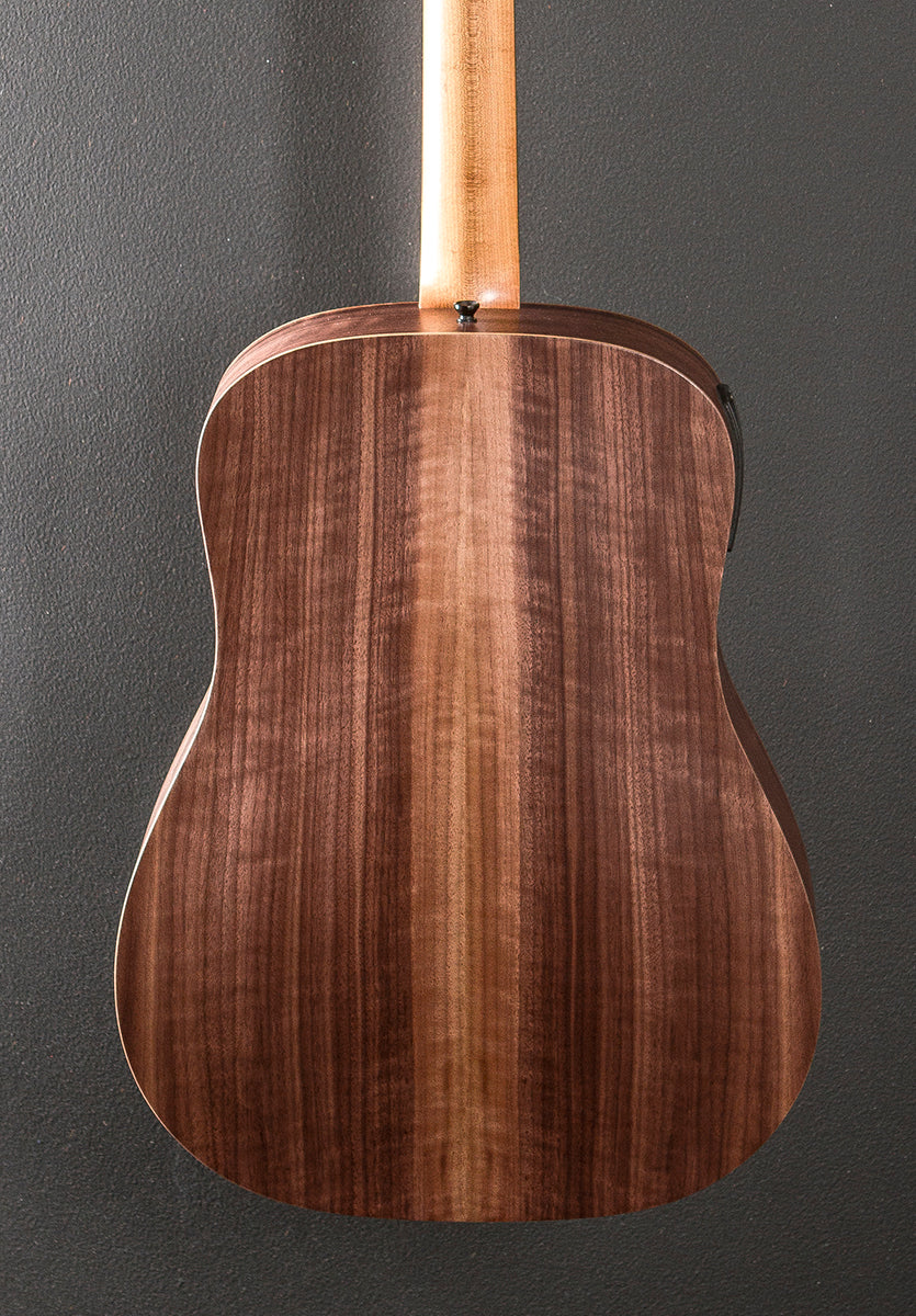 Natural, Matte finish, 15/16th Big Baby Dreadnought body shape, Torrefied Spruce top, Single Ring Plastic Rosette, X bracing, Layered Walnut back and sides, Eucalyptus fingerboard with the Italian Acrylic 4mm dot inlays on a Hard Rock Maple neck, 25.5″ scale length, 1 11/16th” nut width, Cast/sealed tuners, The neck thickness is .83″ at the first and .87″ at the 9th frets, With the ES-B pickup system and gig bag, Excellent