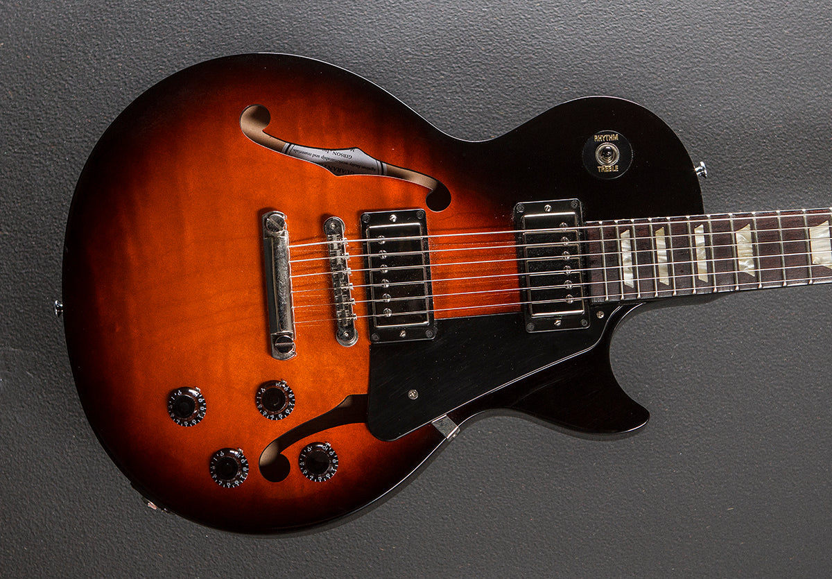 Ginger Burst, Built in the old Memphis factory, Gloss nitrocellulose lacquer finish, Hollow 3-ply Maple/Poplar/Maple body with the ES/LP center block, Rounded C shaped Mahogany neck, Bound 12” radius Rosewood fingerboard with the trapezoid inlays and medium jumbo frets, 24.75″ scale length, 1 11/16th″ nut width, Gibson Super '57 Classic bridge and '57 Classic neck pickups, 3-way toggle switching with the volume and tone controls for each pickup, ABR-1 tune-o-matic bridge and stop tailpiece, Kluson deluxe tuners, The neck thickness is .84″ at the first and .99″ at the 12th frets, 6.6 pounds, No certificate, With the Gibson hardshell case, Very good