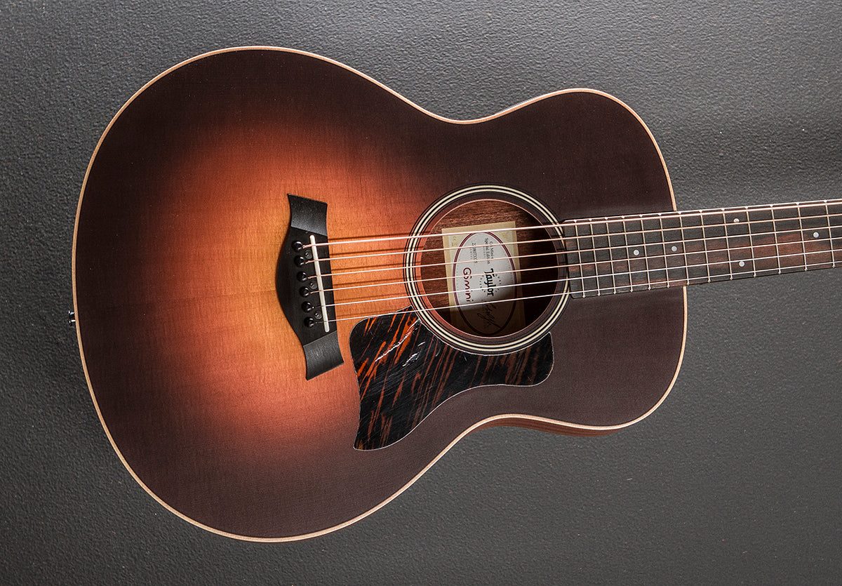 "A Vintage Sunburst top adds a rich complexion to this special-edition GS Mini, serving up a unique visual flourish to match its bold tone. A solid spruce top delivers clear, punchy sound with plenty of volume to hold its own alongside other musicians, while the compact body and short-scale, easy-playing Taylor neck offer an accommodating playing experience no matter your skill level. The onboard ES-B electronics feature a digital tuner to keep your pitch on point wherever you go, and this model includes a gig bag for easy portability."