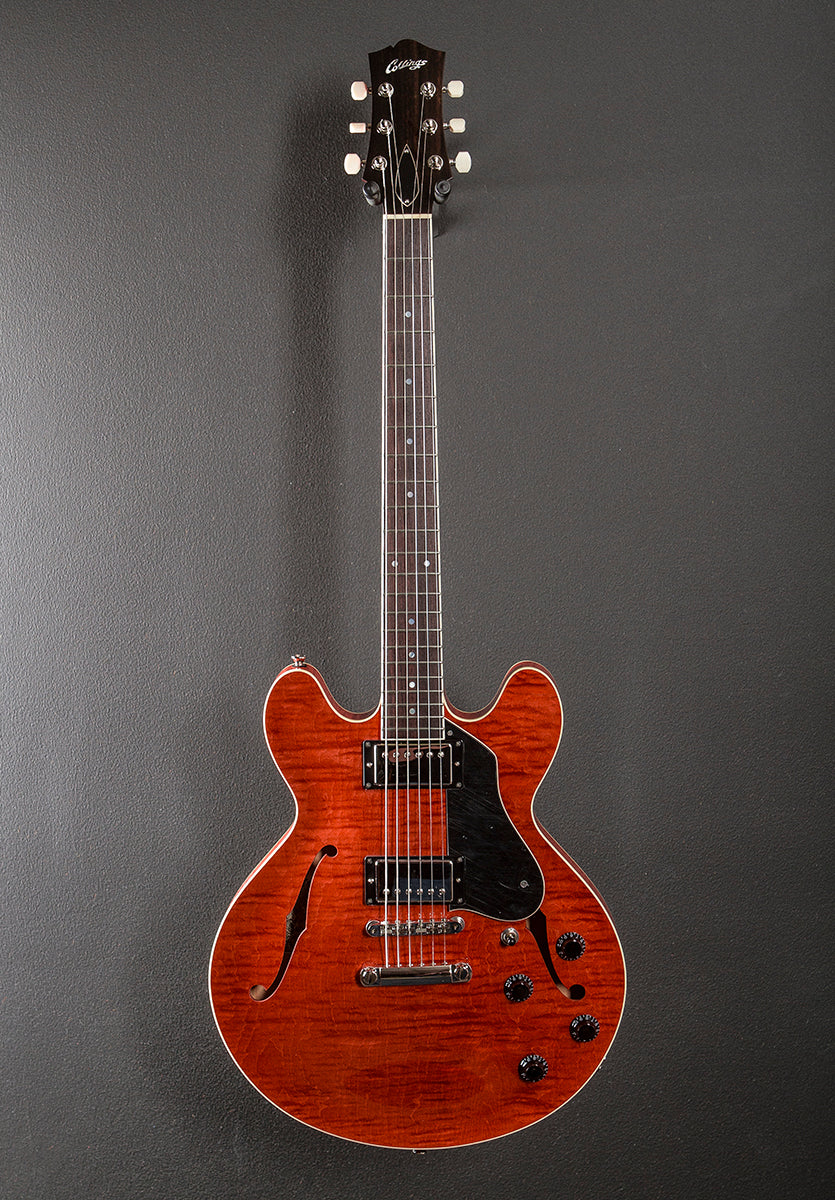 Faded Cherry, Serial number I35LC252549, High gloss nitrocellulose lacquer finish, Semi-hollow laminated Maple body with a Maple/Spruce center block, Non-grained Ivoroid binding, C shaped Honduran Mahogany neck, Bound 12" radius Rosewood fingerboard with the Mother of Pearl long dot inlays and medium frets, 24 7/8th" scale length, 1 11/16th" nut width, Lollar Low Wind Imperial humbucking bridge and neck pickups with the 50's style wiring, Kluson ABR-1 tune-o-matic bridge and stop tailpiece, Gotoh/Collings tuners, 7.4 pounds, With the Ameritage hardshell case