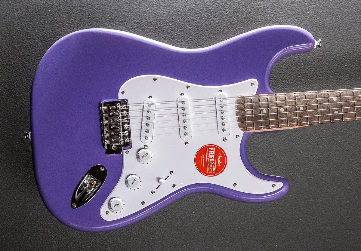 "The Squier Sonic™ Stratocaster® is ready to launch any musical adventure into warp speed, offering iconic Fender® style and inspiring tone for players at any stage. This Strat® sports a slim and inviting “C”-shaped neck profile and a thin, lightweight body for optimal playing comfort while a trio of Squier® single-coil pickups chime with crystal clarity for a wide variety of versatile tones. Further details of this model include a tremolo bridge for expressive vibrato effects, sealed-gear tuning machines for smooth, accurate tuning and durable chrome-plated hardware that is sure to catch the spotlight."