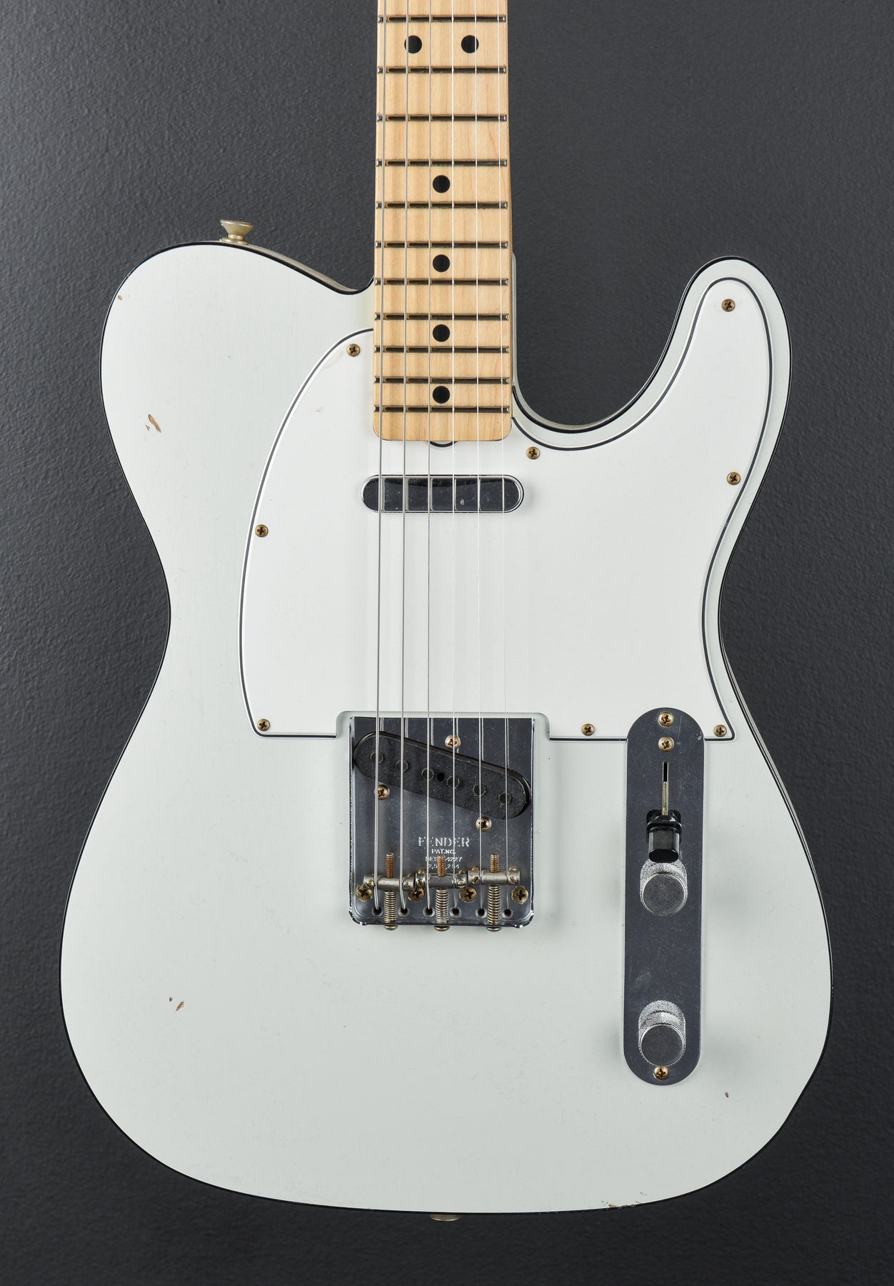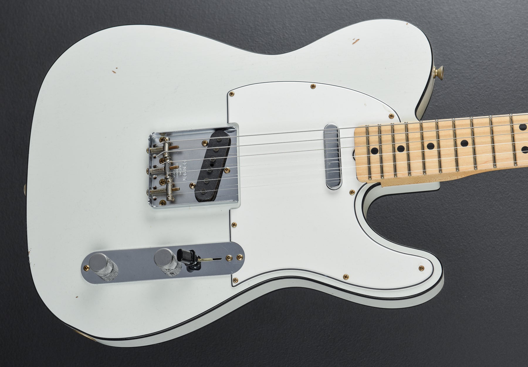 Olympic White, Aged nitrocellulose lacquer finish, Double bound Alder body, 1960 oval C shaped Maple neck with a 9.5″ radius Maple cap fingerboard and medium jumbo frets, 25.5" scale length, 1 5/8th" nut width, Handwound '67 Relic Tele bridge and neck pickups, 3-way switching with the master volume and tone controls, String thru body Tele bridge with the three barrel steel saddles, Fender vintage style tuners, The neck thickness is .85″ at the first and .92″ at the 12th frets, 7.3 pounds, With hardshell case