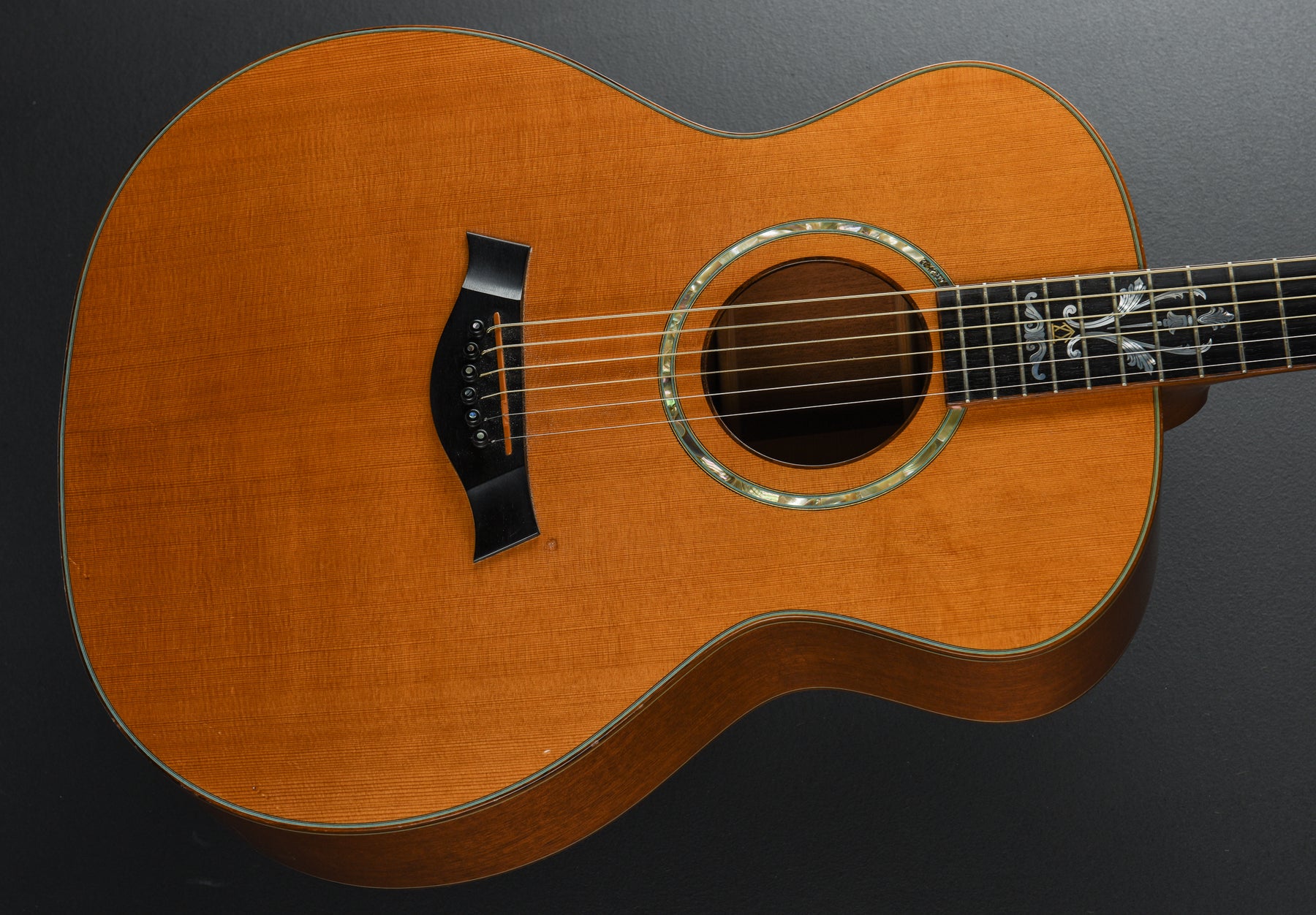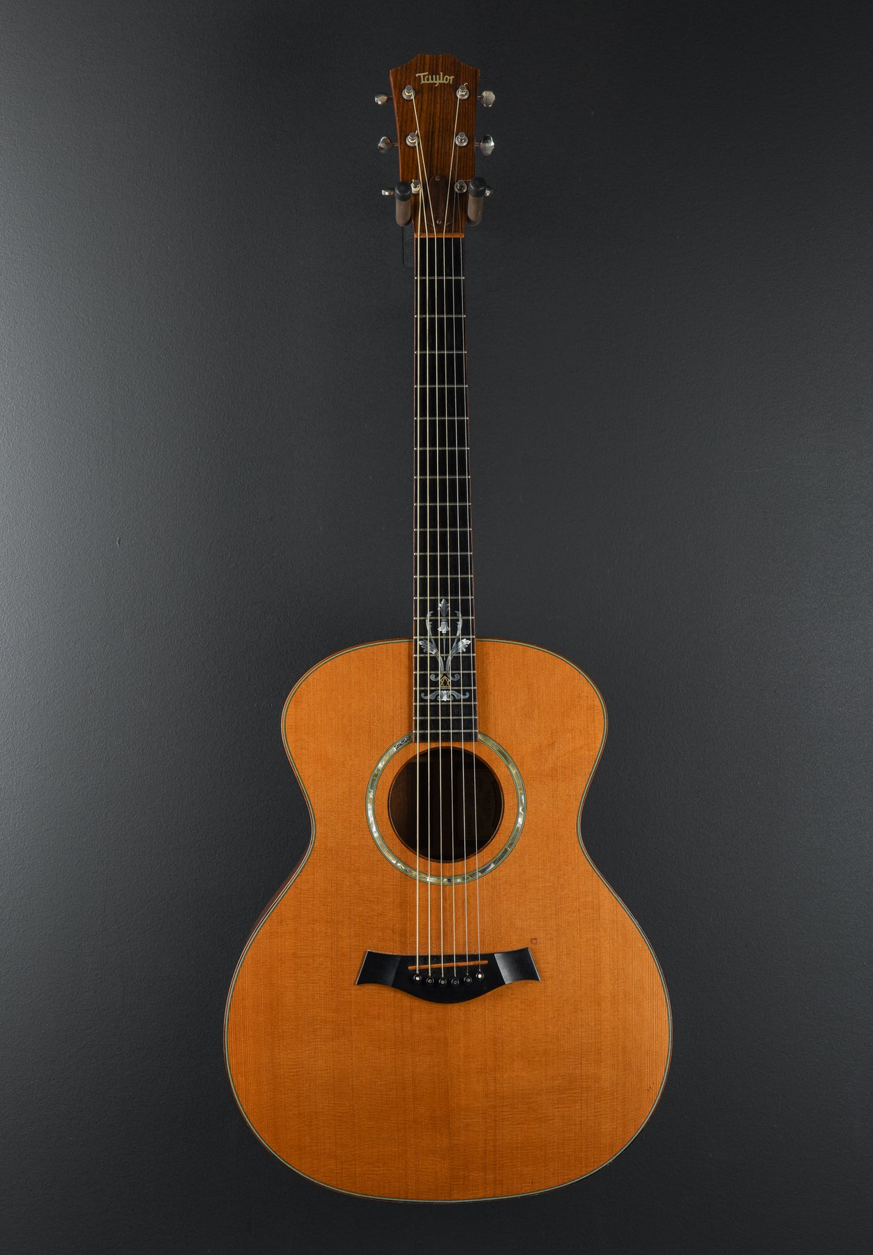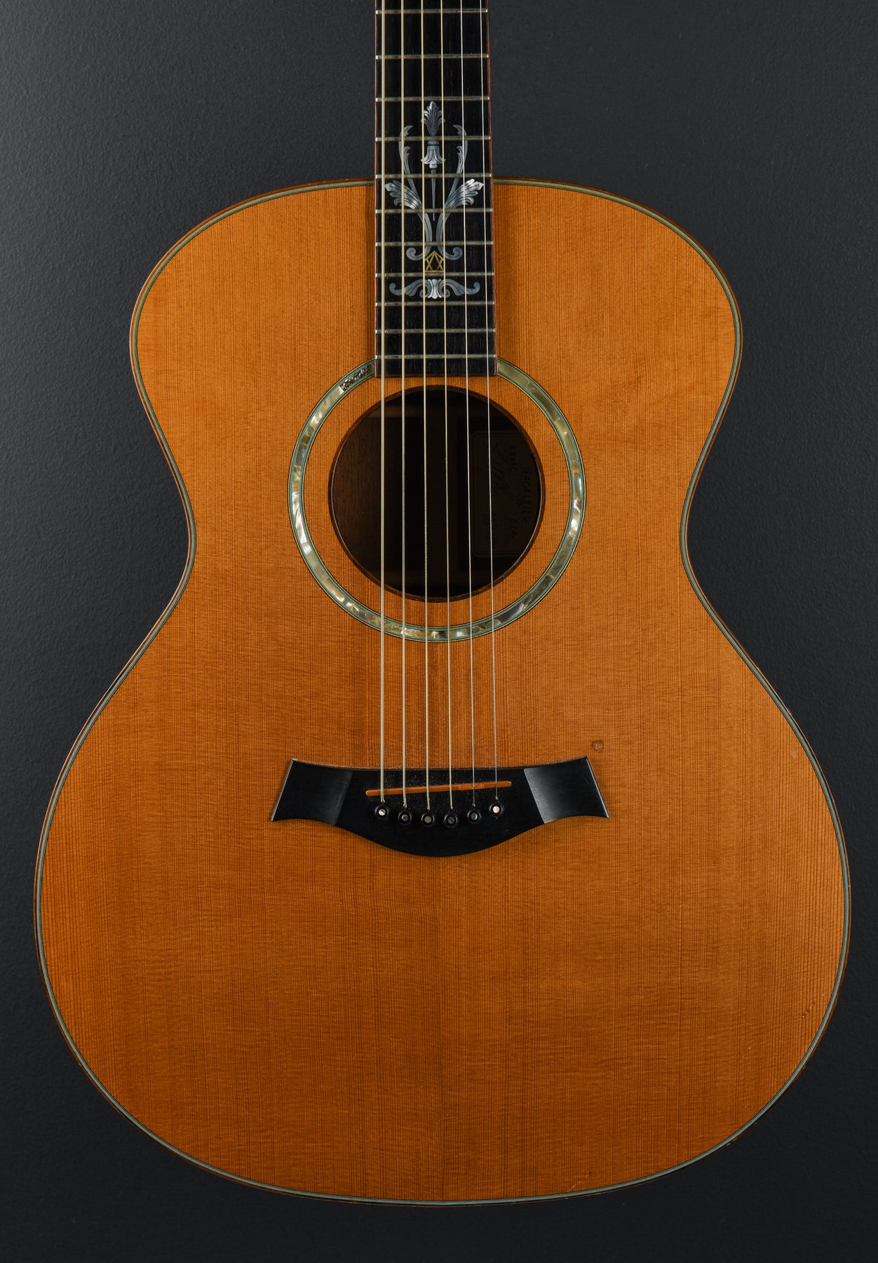 Very Good Condition, 20th Anniversary Grand Auditorium body shape, Gloss finish, Cedar top, Mahogany back and sides, Single adjustable truss rod, Multi-ply Rosewood, Ebonized Wood Fiber, and Abalone binding with Blue Purfling, Abalone rosette, Mahogany neck, 25.5″ scale length, 1.75″ nut width, 20-fret Ebony fingerboard with 18K Gold “XX” and Mother of Pearl inlays, Ebony bridge, Original Taylor hardshell case with Warranty Card and Certificate of Authenticity, Limited Edition #024 of 250.