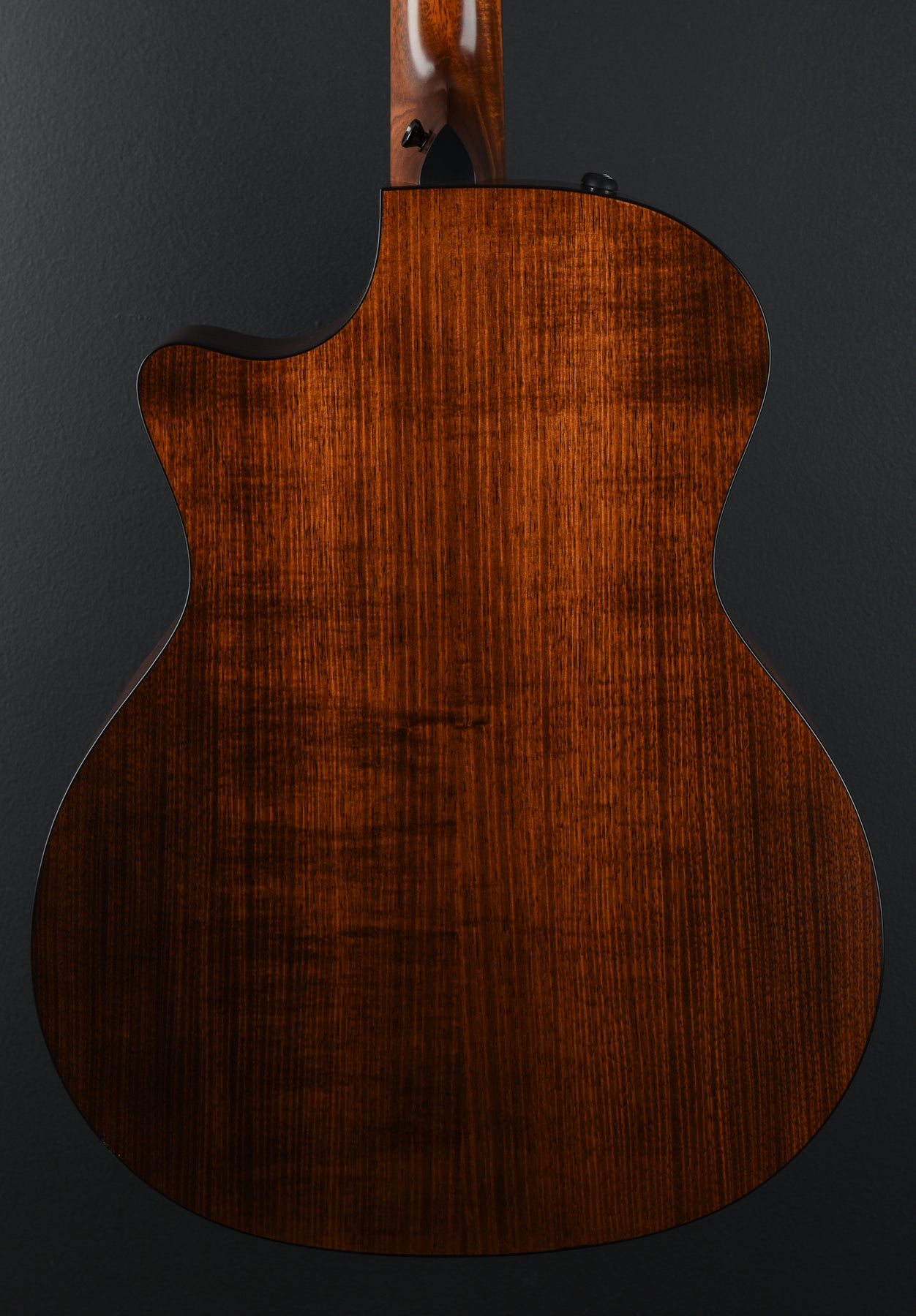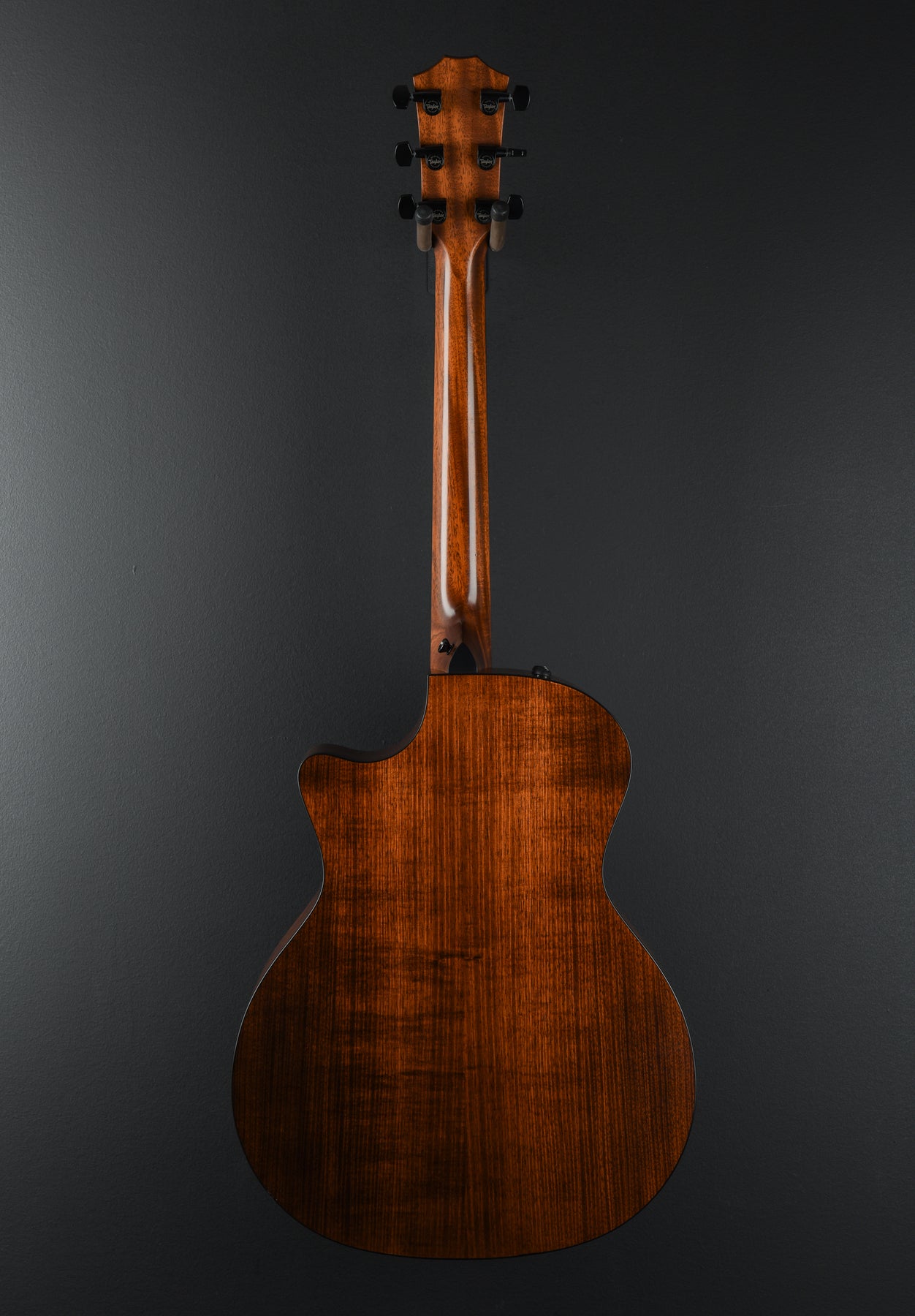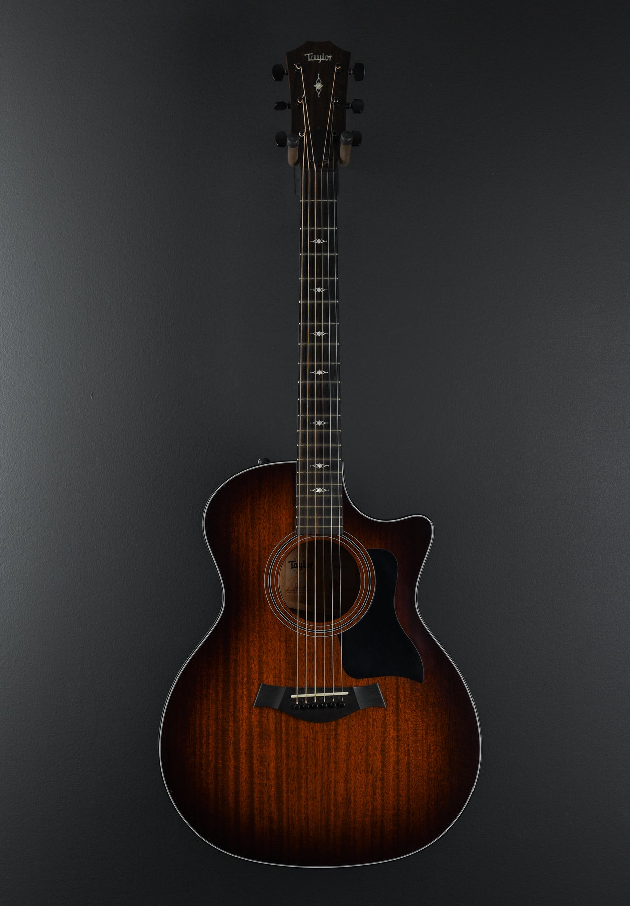Very Good Condition, Shaded Edge Burst Finish, Grand Auditorium Body Shape With Solid Tropical Mahogany Top and Solid Tasmanian Blackwood Back and Sides, Tropical Mahogany Neck With a 15″ Radius West African Crelicam Ebony Fingerboard and 20 Frets, Gemstone Italian Acrylic Inlays, 25.5″ Scale Length, 1 3/4″ Black Graphite Nut Width, Expression System 2 Electronics With Volume, Bass, and Treble Controls, West African Crelicam Ebony Bridge, Taylor Nickel Tuners, Black Binding With Black/White Purfling, Comes With the Original Hardshell Case.