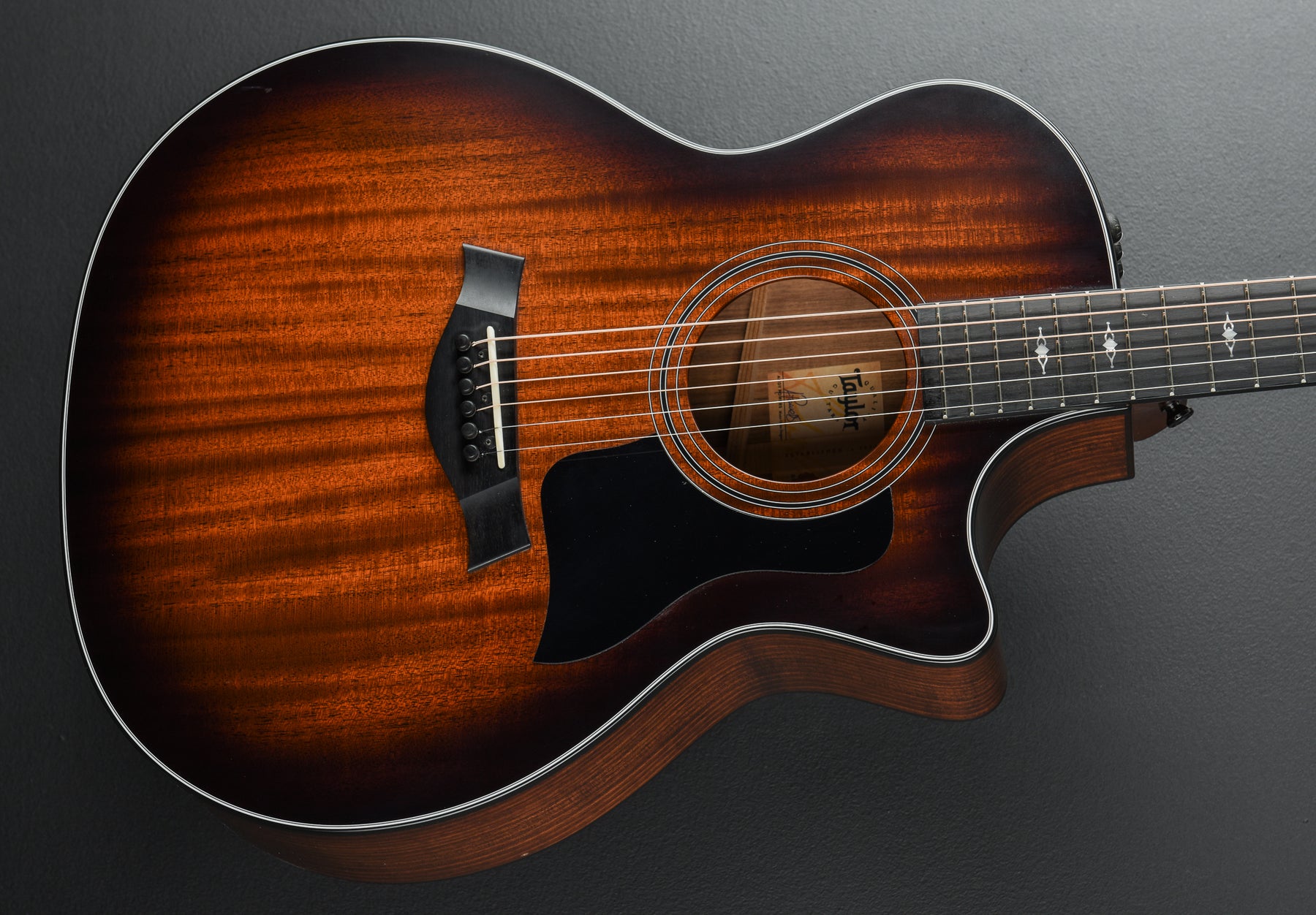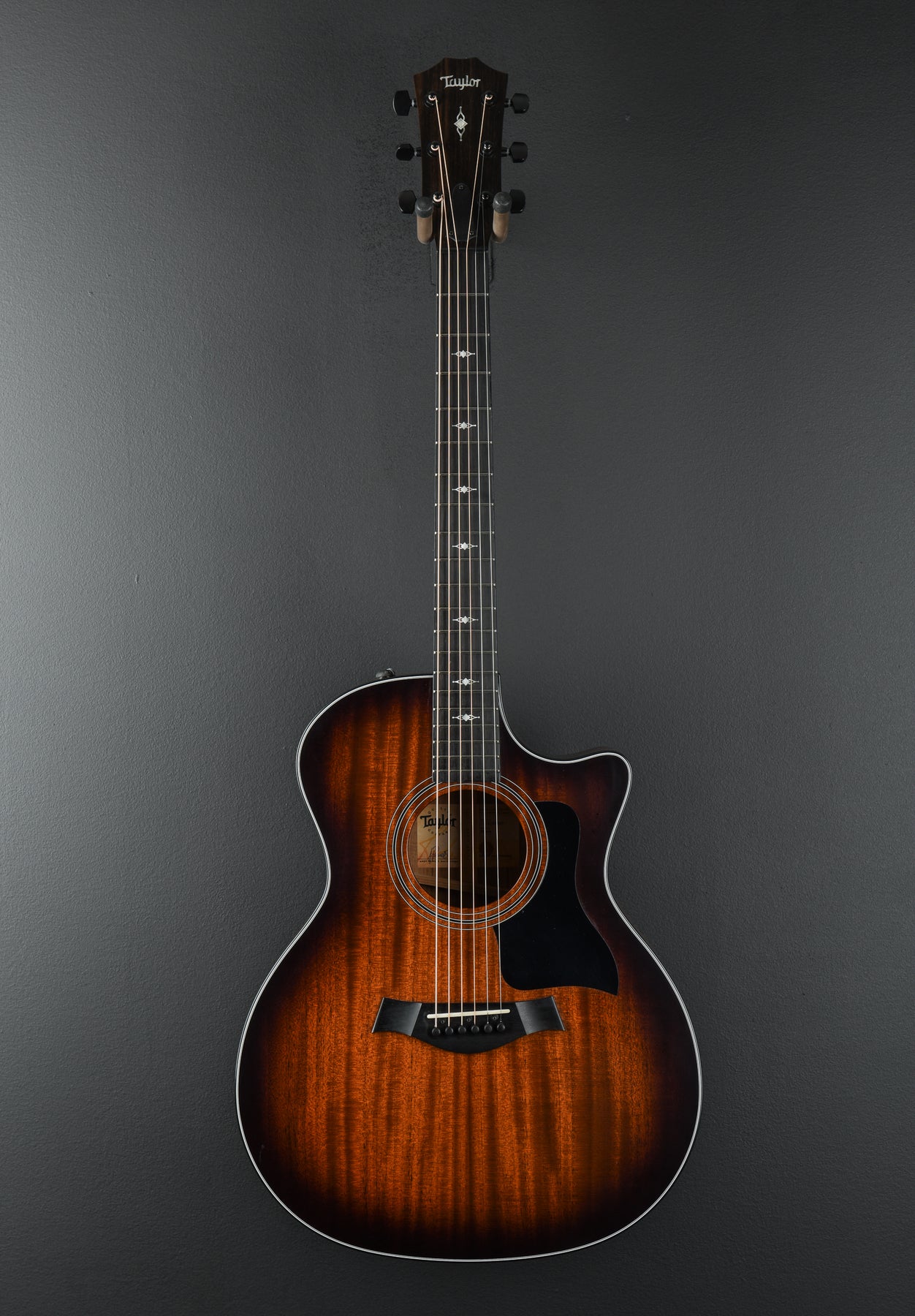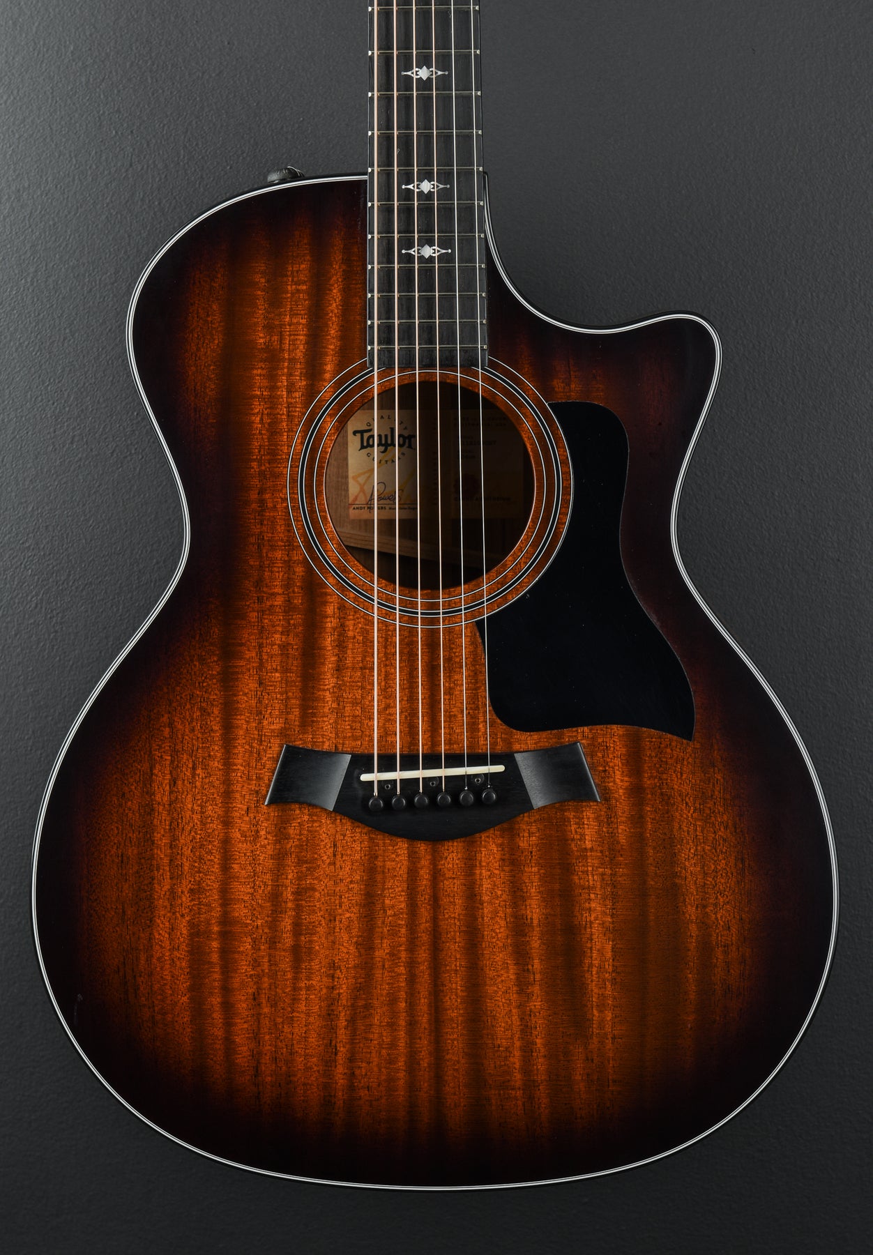 Very Good Condition, Shaded Edge Burst Finish, Grand Auditorium Body Shape With Solid Tropical Mahogany Top and Solid Tasmanian Blackwood Back and Sides, Tropical Mahogany Neck With a 15″ Radius West African Crelicam Ebony Fingerboard and 20 Frets, Gemstone Italian Acrylic Inlays, 25.5″ Scale Length, 1 3/4″ Black Graphite Nut Width, Expression System 2 Electronics With Volume, Bass, and Treble Controls, West African Crelicam Ebony Bridge, Taylor Nickel Tuners, Black Binding With Black/White Purfling, Comes With the Original Hardshell Case.