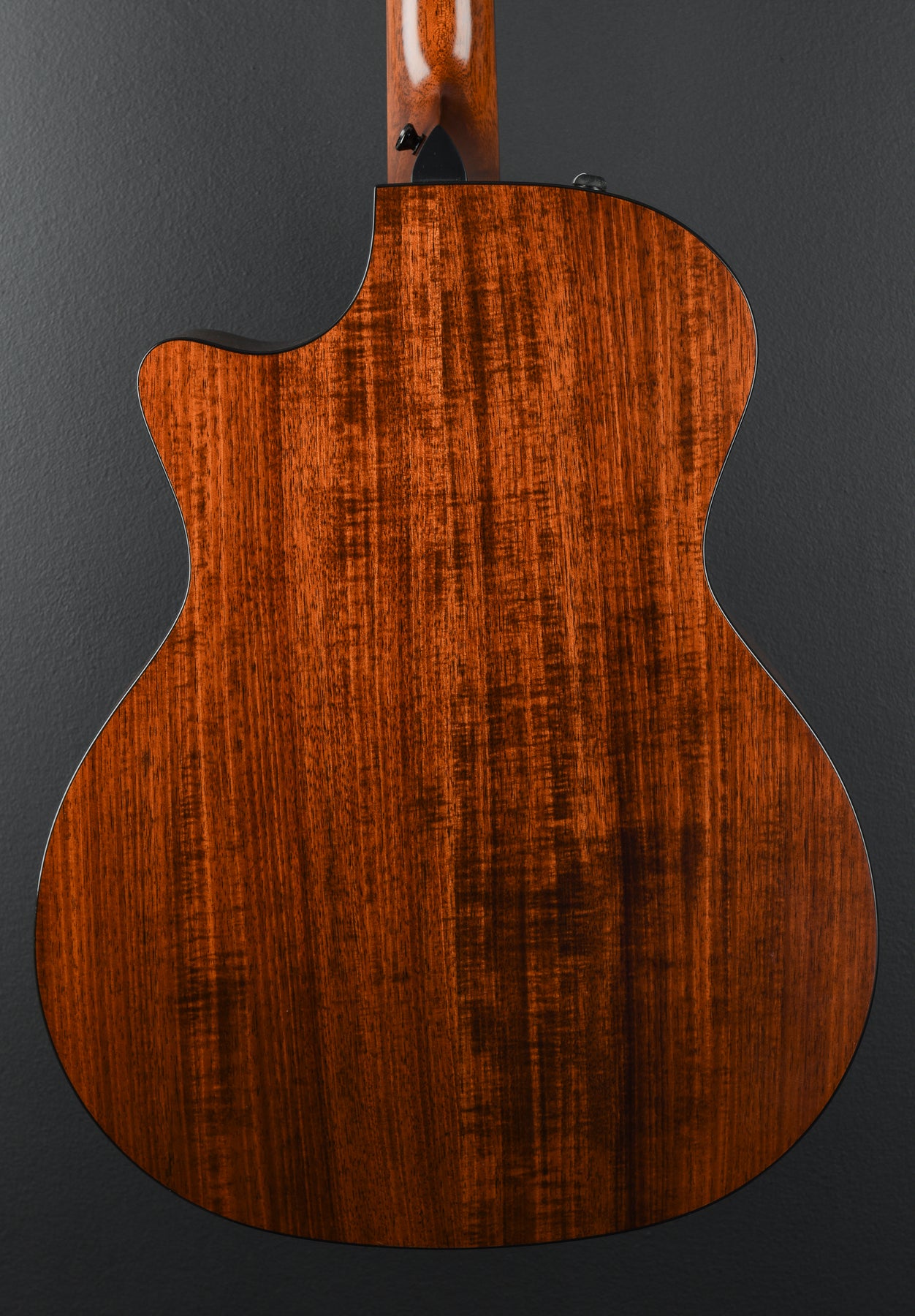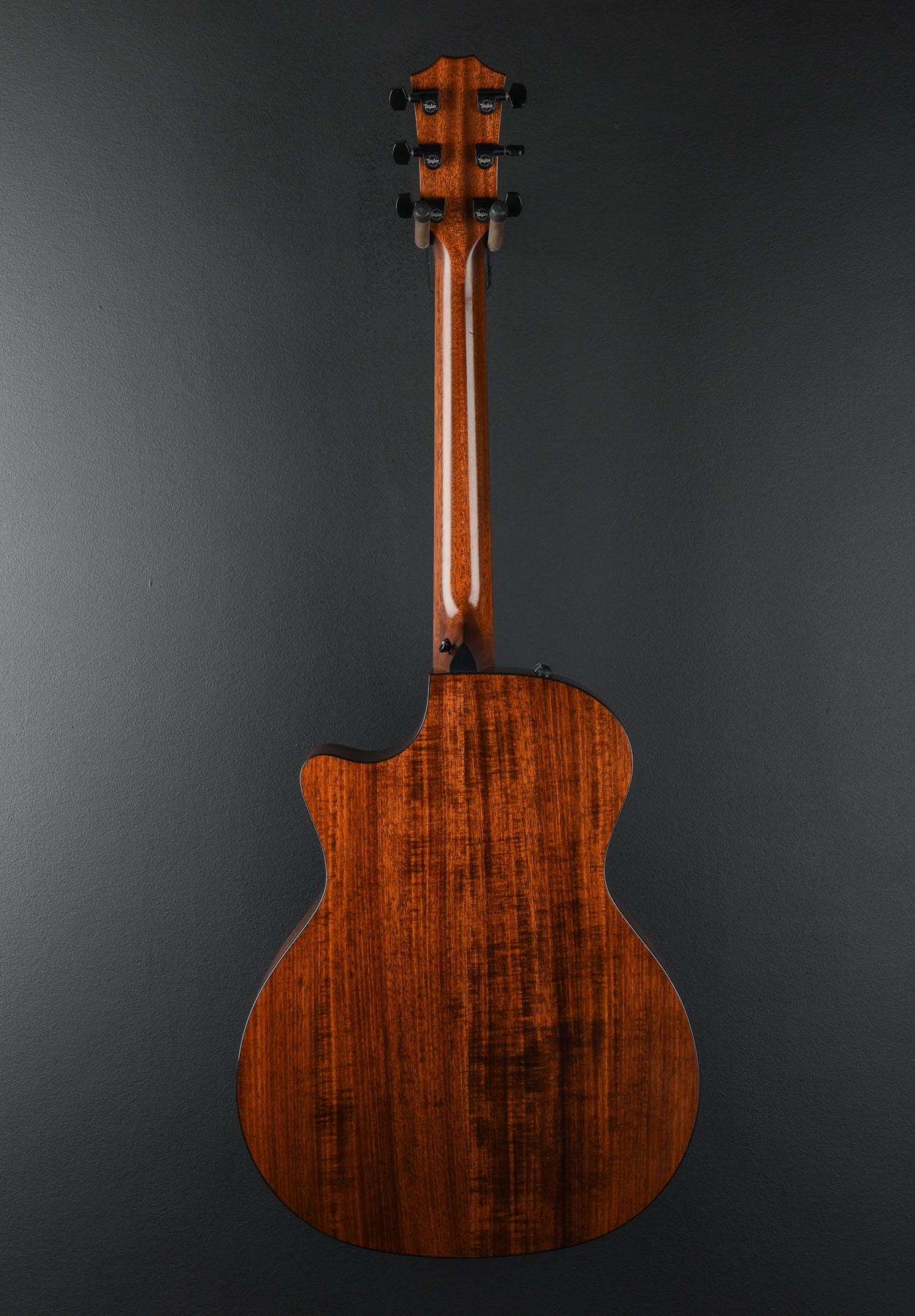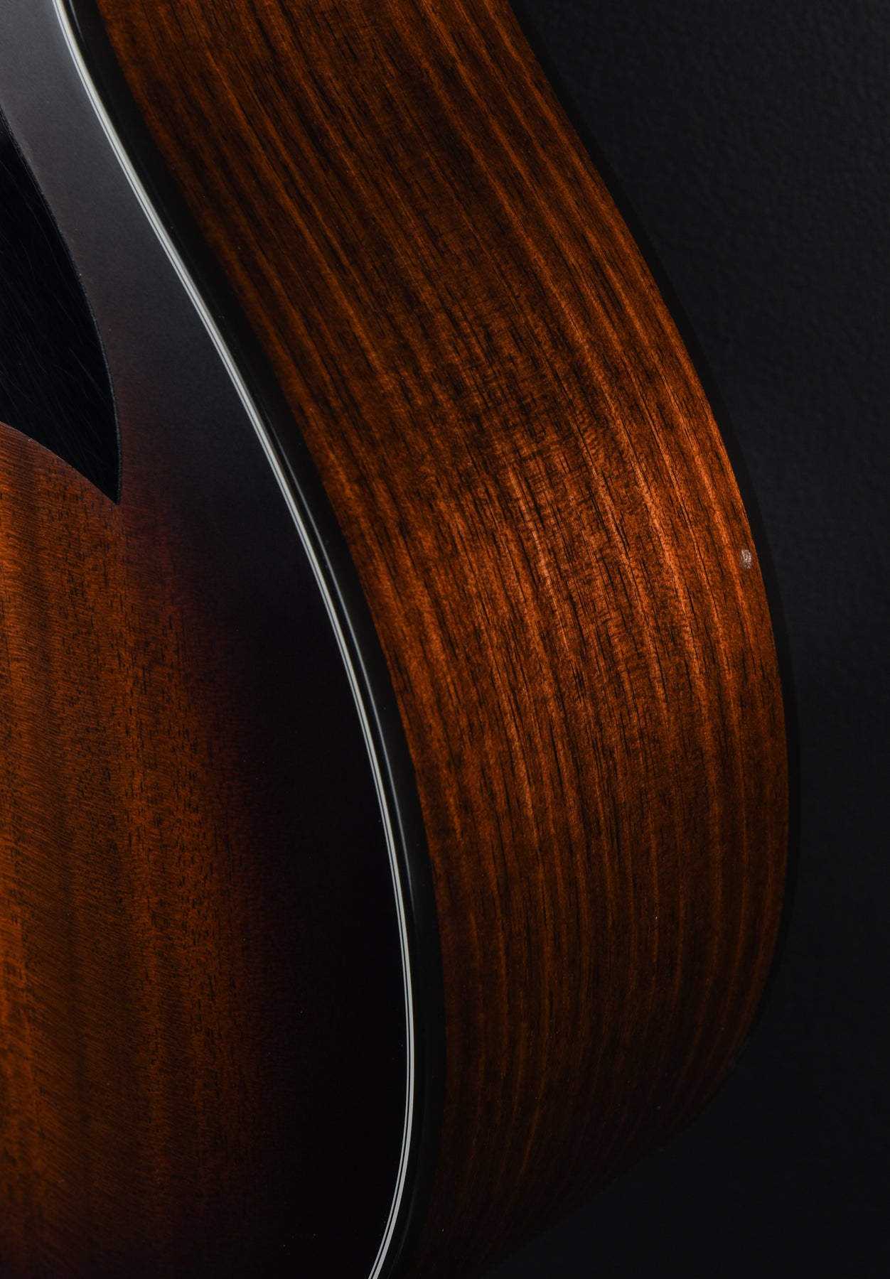 Very Good Condition, Shaded Edge Burst Finish, Grand Auditorium Body Shape With Solid Tropical Mahogany Top and Solid Tasmanian Blackwood Back and Sides, Tropical Mahogany Neck With a 15″ Radius West African Crelicam Ebony Fingerboard and 20 Frets, Gemstone Italian Acrylic Inlays, 25.5″ Scale Length, 1 3/4″ Black Graphite Nut Width, Expression System 2 Electronics With Volume, Bass, and Treble Controls, West African Crelicam Ebony Bridge, Taylor Nickel Tuners, Black Binding With Black/White Purfling, Comes With the Original Hardshell Case.