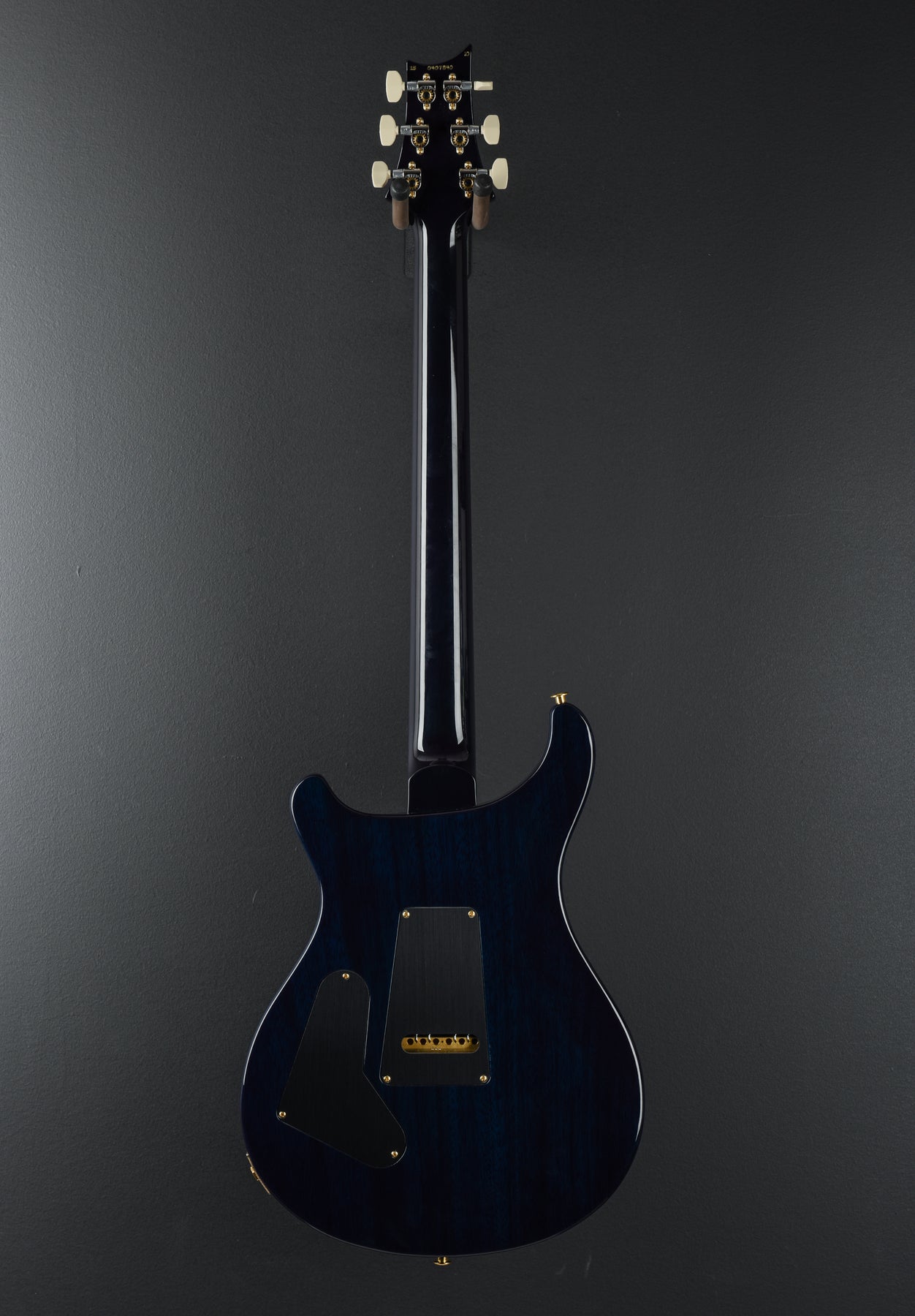Faded Whale Blue Smokeburst, High gloss nitro finish, Violin carved Flame Maple 10 top with the F hole, Semi-hollow Mahogany body, Pattern Thin carved Mahogany neck, 10" radius Ziricote fingerboard with the outlined old school Bird inlays, Ziricote headstock veneer with the pre-factory Eagle logo, 25″ scale length, 1 11/16th" nut, PRS TCI bridge and neck pickups, 3-way toggle switching with the volume and tone controls plus the two mini-toggle EQ switches, PRS Gen III tremolo, PRS Phase III locking tuners with the wing buttons, 6.5 pounds, With the PRS ATA multi-fit molded hardshell case