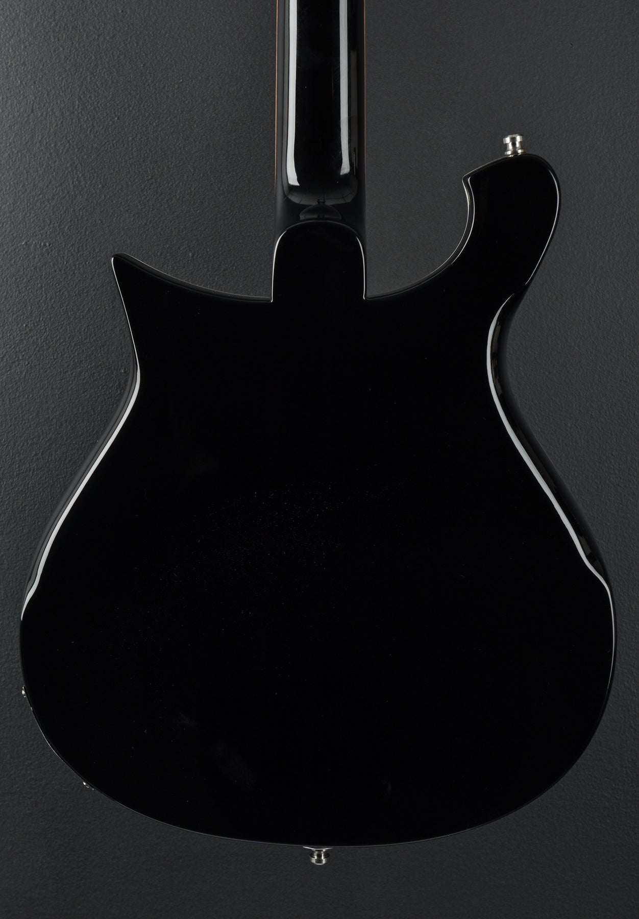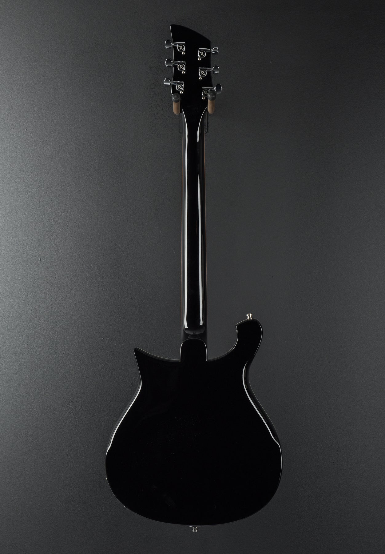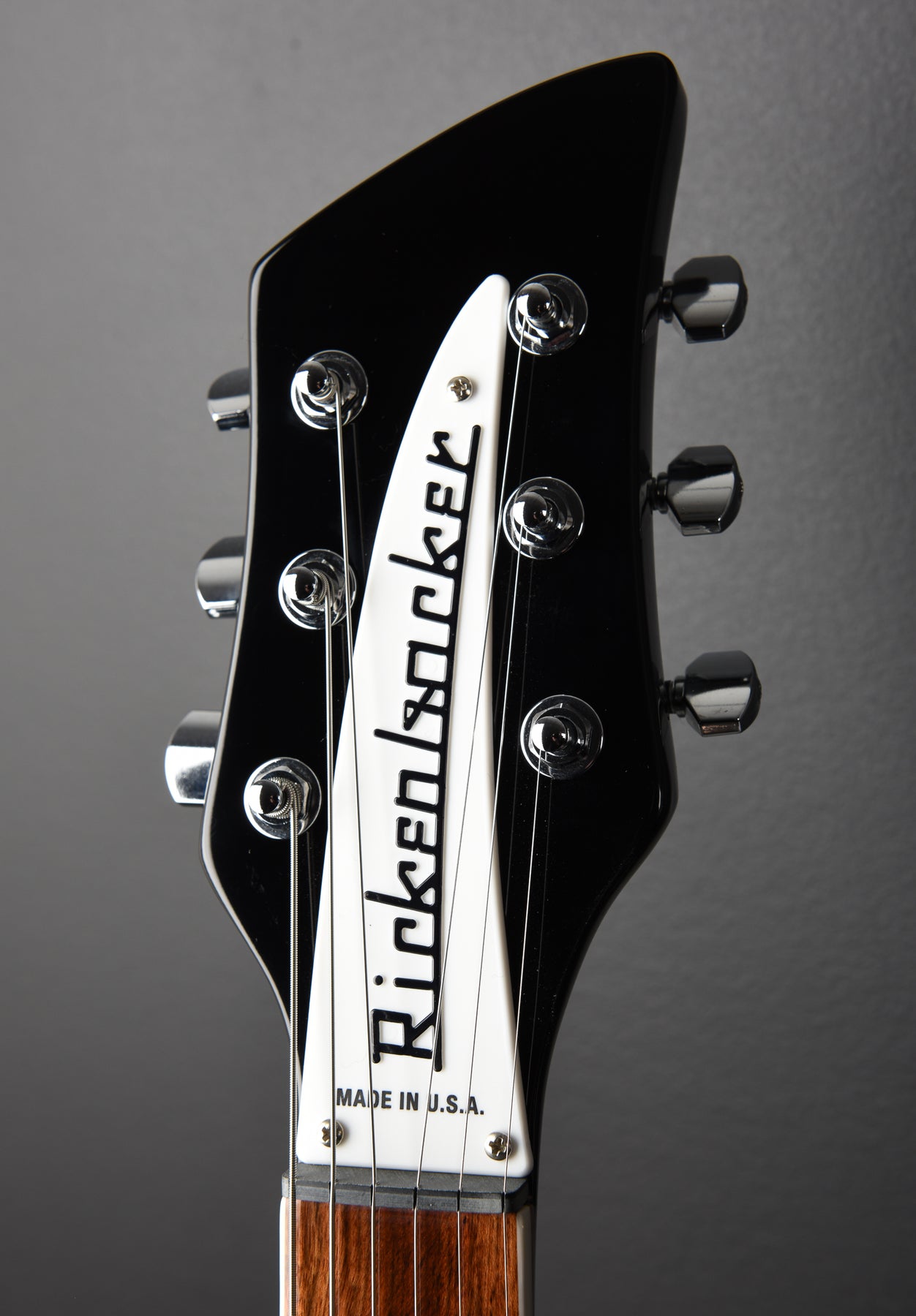 Jetglo Finish, Maple Body Wings with a Thru-Body Maple Neck, Bound 10" Radius Rosewood Fingerboard with Triangle Inlays, 24.75" Scale Length, 1.63" Nut Width, Rickenbacker Hi-Gain Bridge and Neck Pickups, 3-Way Toggle Switching with Individual Volume and Tone Controls Plus Bass Blend Control, Ric-O-Sound and Standard Output Jacks, 6-Saddle Bridge and “R” Tailpiece, Gotoh Tuners, 7.8 Pounds, With Hardshell Case.